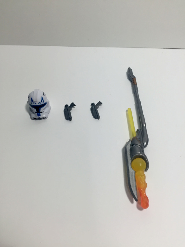 配件是克隆人上尉雷克斯的頭盔、雙槍、組合權杖