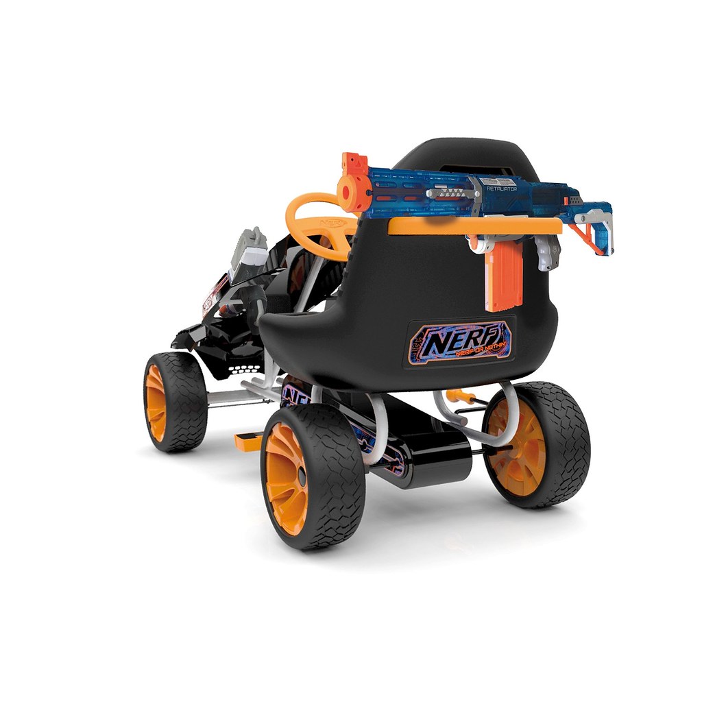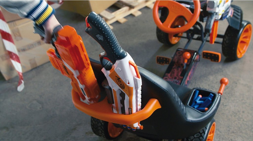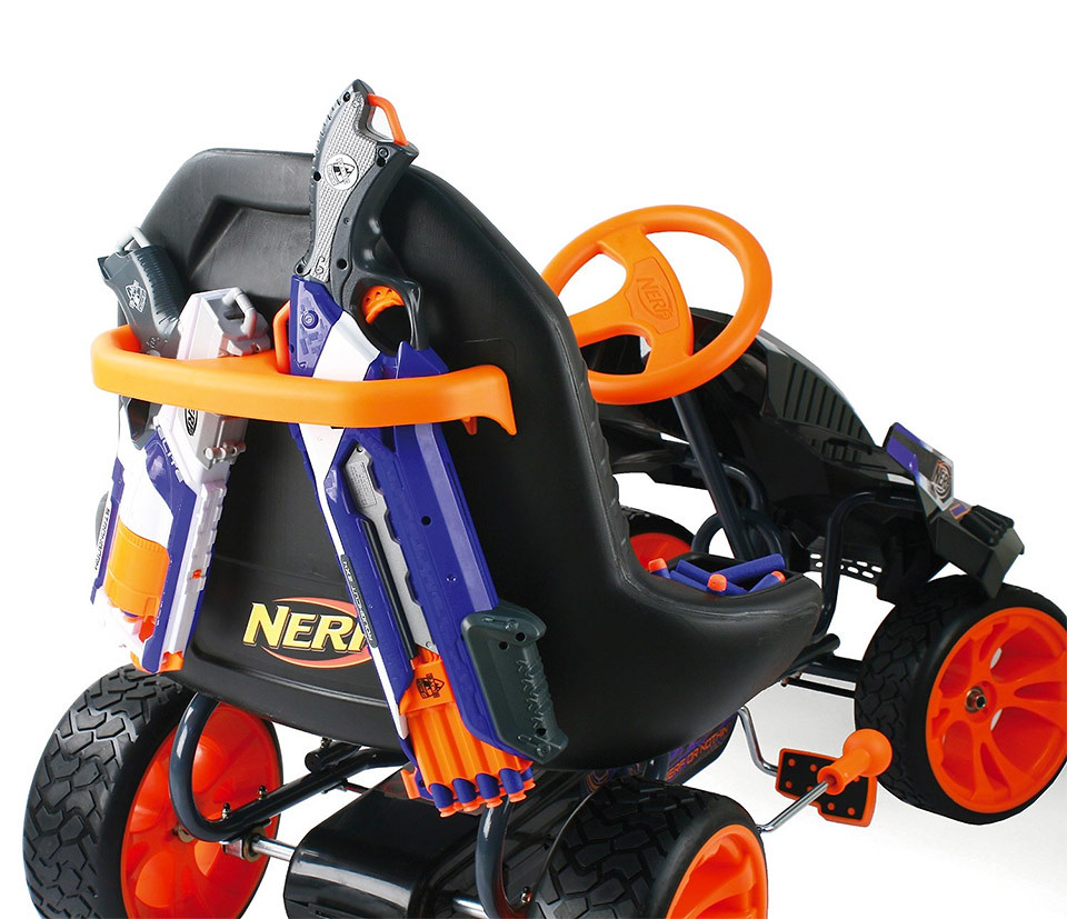歐美玩具大廠孩之寶旗下非常受到男孩們所喜愛的非發漲海綿遊戲槍品牌「NERF」,與專門製作嬰兒車、學步車、幼兒Go-Kart 車的品牌Hauck 公司攜手,推出一款NERF 專用的「戰鬥衝鋒車」(NERF Battle Racer)。相信家中有兒子的看到這款戰車絕對會瘋狂尖叫啊!因為實在是太帥氣了,連小編都想駕著它跑來跑去!!