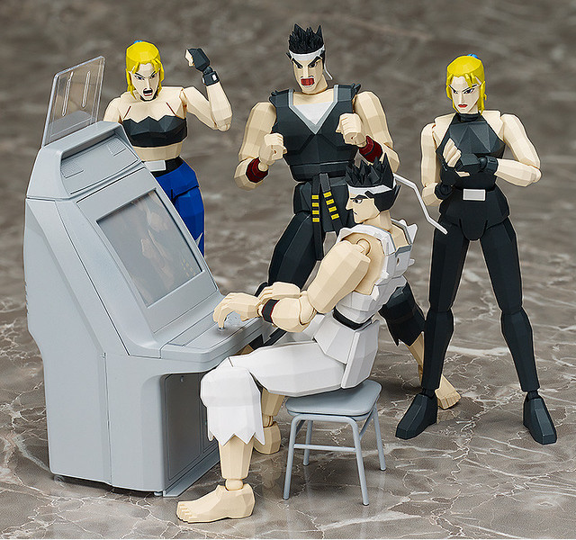figma《VR快打》系列最大的特徵在於重現了初代登場時的3D多邊型造型。 並且藉由figma 流暢且穩固的原創關節,讓各位玩具人能夠盡情地重現原作中的各式各樣技巧;並且在部分的位置使用了軟性材質來製作,同時間具了可動性與姿態的穩定性。 除此之外,將附有「普通」與勝利姿態的「吶喊」兩種不同的表情零件,以及多種手部零件可供替換。