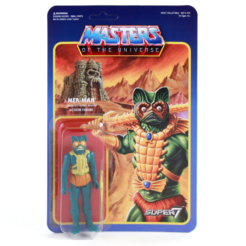 這全新的Retro Action Figure 系列作品,似乎是SUPER7 公司將其之前與FUNKO 公司所合作推出的3.75 吋ReAction 系列的延伸產品線。而其這波將要推出的角色包括:太空超人(HE-MAN)、骷髏王(Skeletor)、獸人(Beast-Man)以及魚人(Mer-Man)。除了3.75 吋的人偶之外,每款作品都有附上武器配件喔。喜愛太空超人的玩具人不要錯過囉。