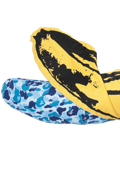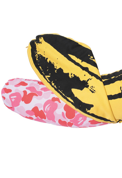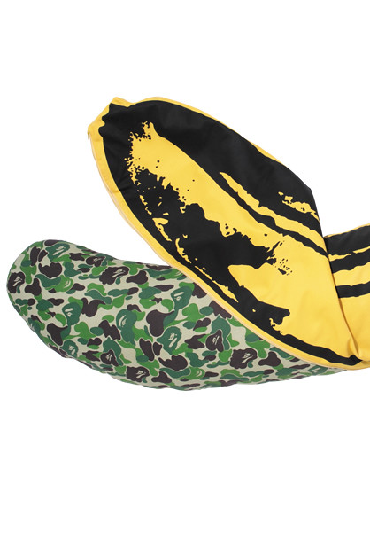 日本知名玩具品牌MEDICOM TOY 公司將要攜手知名潮流品牌「A BATHING APE」推出普普藝術大師「Andy Warhol」最知名的作品之一:「黑黃色香蕉」(Banana)的抱枕作品。這次將會推出三種不同的尺寸與顏色,包括大(約120 公分)、中(約90 公分)、小(約76 公分)三個尺寸;以及藍色、綠色、粉色三種迷彩。