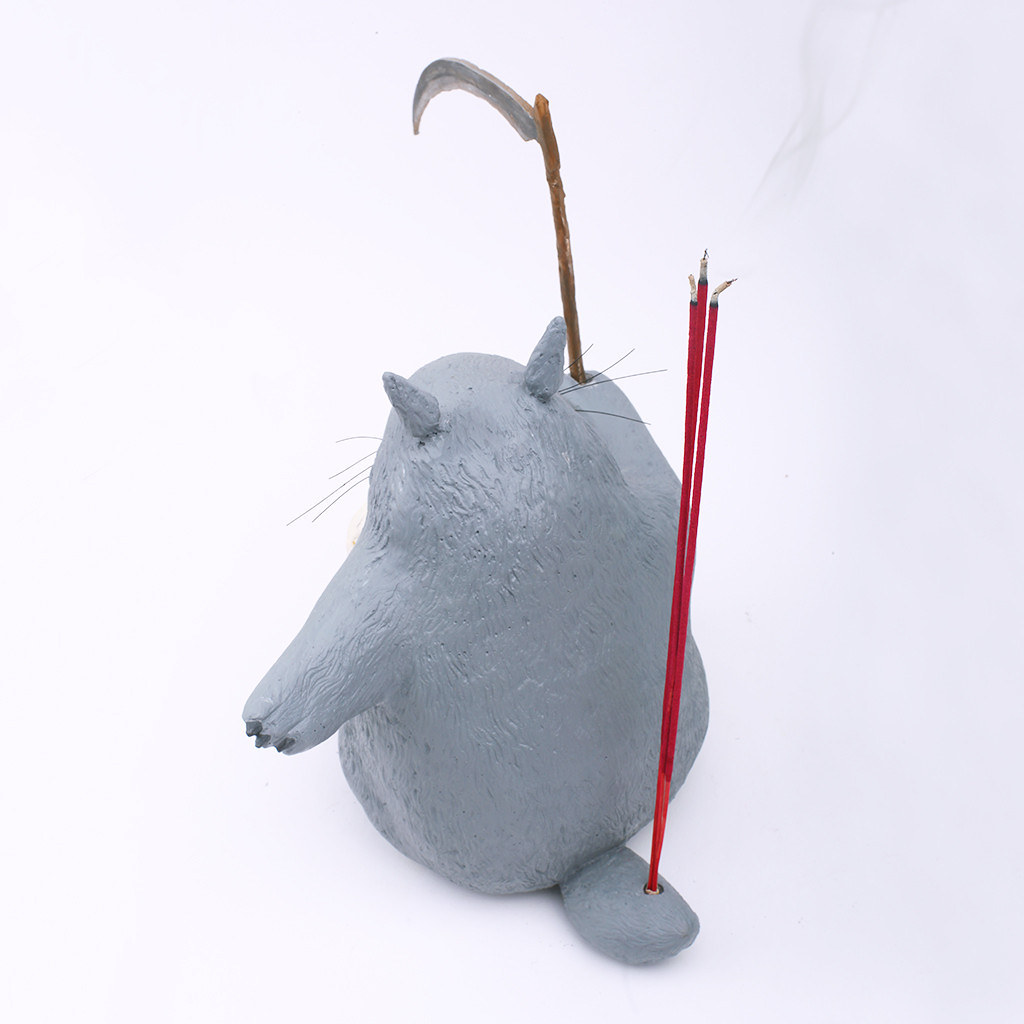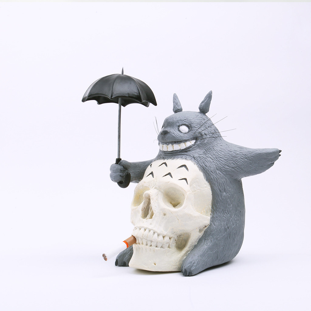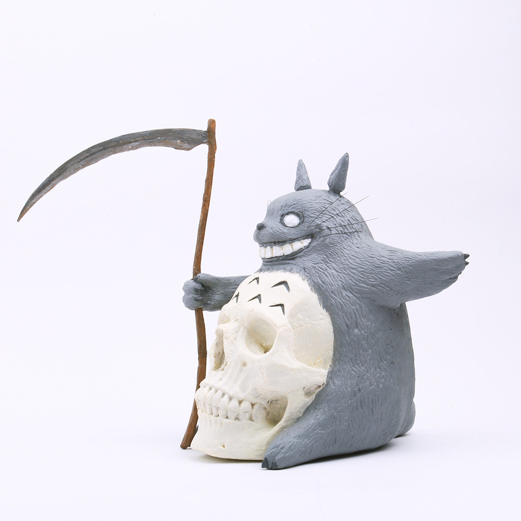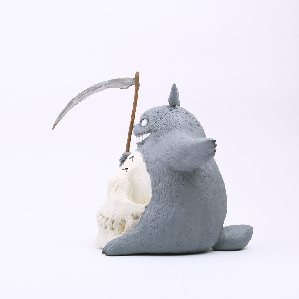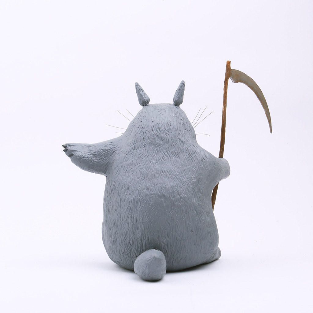 相信不少玩具人都跟小編一樣是看著這部由吉卜力工作室與德間書店在1988 年所推出的動畫電影「龍貓」(となりのトトロ)長大的。而這次KILAS 將過去大家印象中可愛的龍貓造型給黑暗化,將其肚子化作叼了根菸的骷髏頭,除了有附上招牌的雨傘配件之外,更送上了一把鐮刀造型的配件。值得一提的,這款作品不僅是雕像而已,其特別在龍貓尾巴的部分設置了可安插線香的孔,讓各位玩具人可以更多元的來珍藏這個作品。