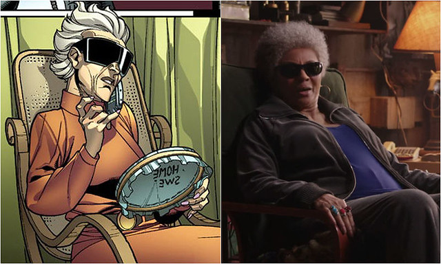 在電影裡則是大改造,雖然同樣是叛逆裝扮,可卻是平頭。此外,漫畫的能力是預知和心靈感應,電影則是散發出爆破能量。另外一個最大的不同,電影有讓她加入X戰警,鋼人則是她的監護人。