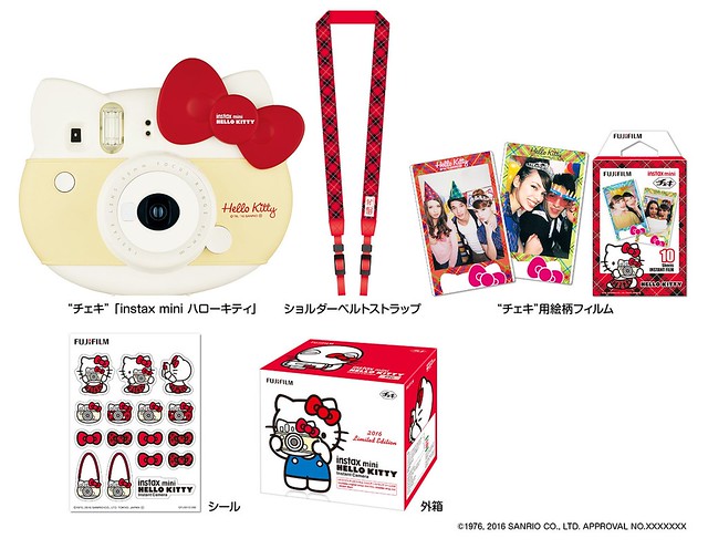 深受許多少女所喜愛的富士フイル拍立得相機“チェキ”(cheki)系列,繼2014 年推出了超可愛的KITTY 臉譜造型「Hello Kitty 40 週年」限定紀念機種之後,將再度讓這一款限量的特殊相機已全新的紅白配色登場,推出2016限定版「instax mini ハローキティ レッド」(HELLO KITTY RED)款式。