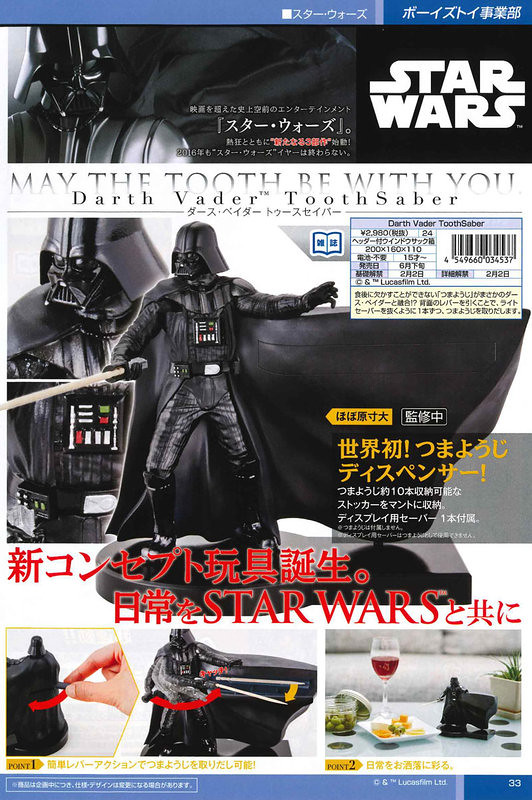 日本知名玩具廠牌BANDAI 宣布將推出一款創意十足的「黑武士牙籤光劍收納盒」(Darth Vader ToothSaber),精彩的造形設計搭配上動態機關,讓您的桌上展開銀河級的宿命之戰!