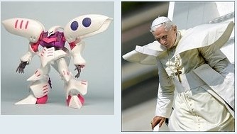 ▼ 永野護老師的靈感經常來自於服裝設計,例如丘貝雷的造型應該是和教宗學的。(誤)