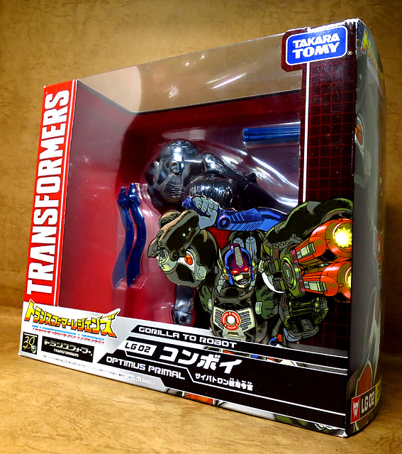 「猴年特集」第一回、豪邁登場!第一個要分享的,是在2014年由TAKARA TOMY於LG系列中複刻的主人公-コンボイ/Optimus Primal(金剛王/奧迪武/黑猩猩隊長,下文將以台灣玩家最熟悉的譯名「金剛王」稱之)。
