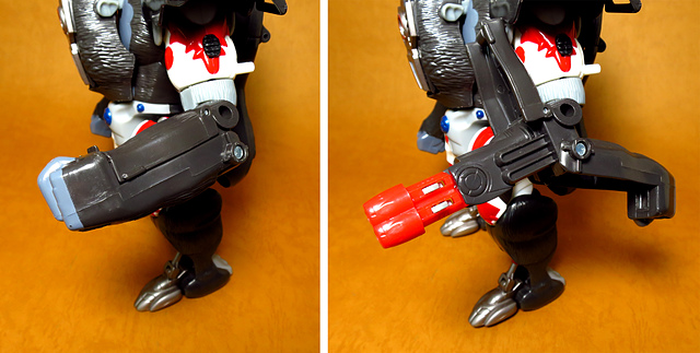 ↓再推動背上的開關,就能讓手肘以下的部份水平旋轉!配合武器更加好玩
