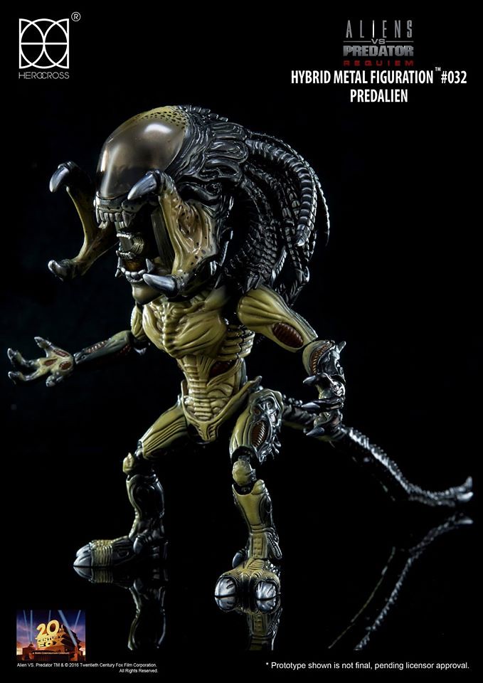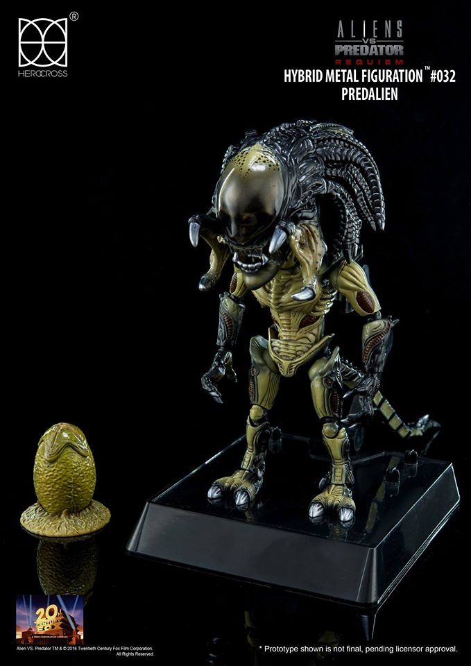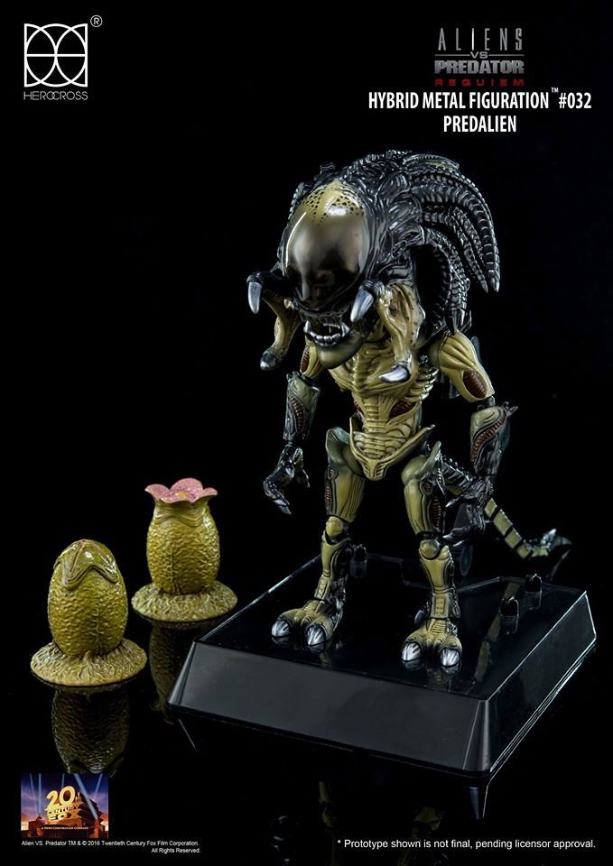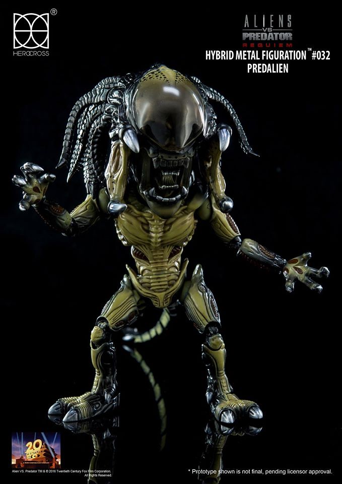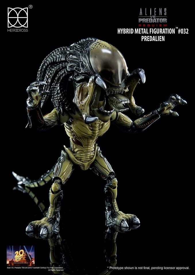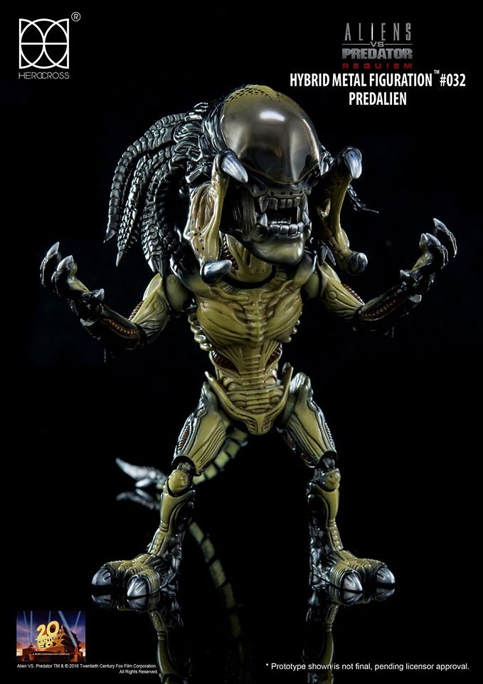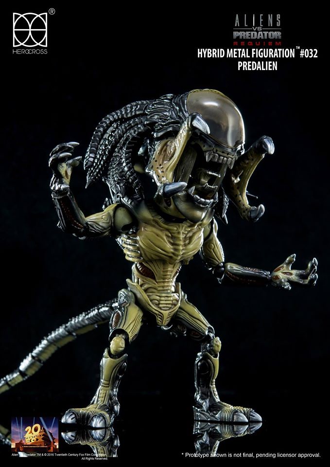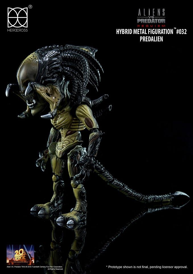 知名合金玩具品牌「HEROCROSS」公司旗下「HMF」(Hybrid Metal Figuration)系列繼日前推出了電影「異形戰場2:適者生存」(Aliens vs. Predator: Requiem)中的「狼終極戰士」(Wolf Predator)作品之後,又將要再推出一個全新的角色:「終戰異形」(Predalien)。