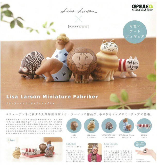 預計將推出有五款麗莎・拉爾森作品的轉蛋商品: