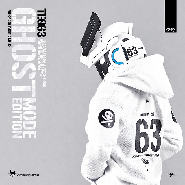 由菲律賓知名的塗鴉藝術家、插畫家、玩具設計師Quiccs Maiquez 與香港新銳玩具品牌「Devil Toys」破天荒聯名合作,將Quiccs 當紅角色1/6 比例立體化的TEQ63 將同步推出限量100 組的白色版TEQ63[GHOST]。