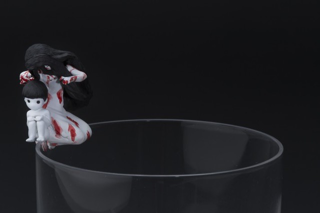 每張前賣券將隨機附有一款。貞子垂下的黑髮造型、伽椰子身穿白色連身裙渾身是血的模樣,搭配上經典坐姿的俊雄,詭異充滿存在感的造型,絕對值得入手啊!~