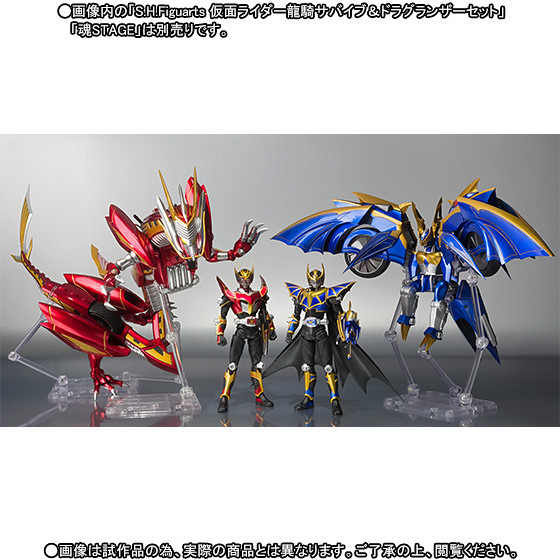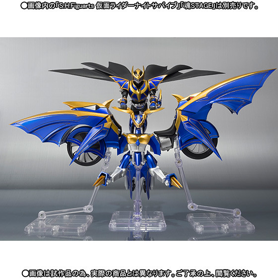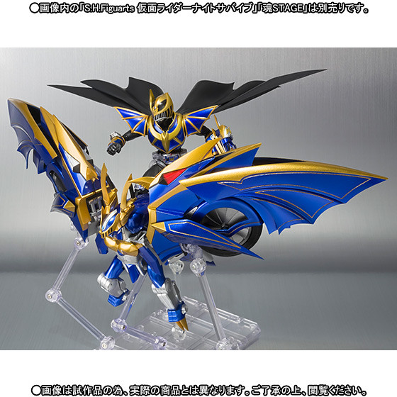 日BANDAI萬代玩具公司的S.H. Figuarts可動系列之前已經公開的「龍騎生存型態&烈火龍」大型的套裝組合預計於下個月推出,近日又在公佈了「假面騎士生存夜騎&Dark Raider」仮面ライダーナイトサバイブ&ダークレイダーセット的套裝組合(名稱暫譯),將劇中由假面騎士夜騎使用“生存卡-疾風”後所變身成為的「生存夜騎型態」來呈現,並且和他特殊的契約獸Dark Raider搭配共同一起販售。