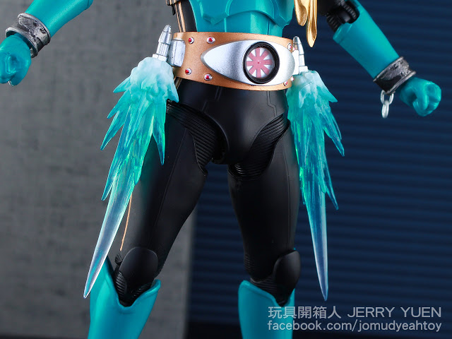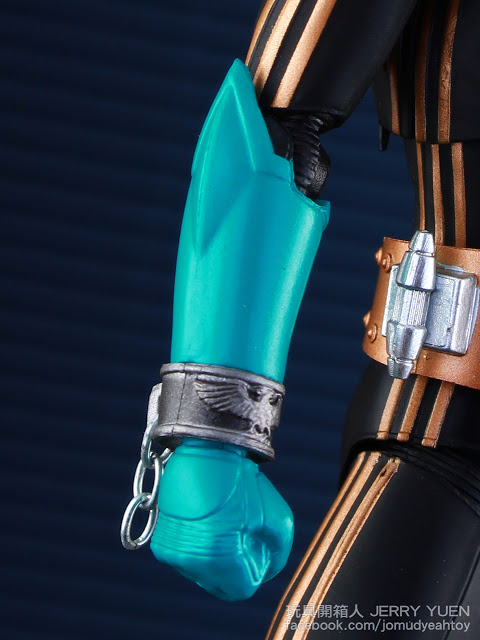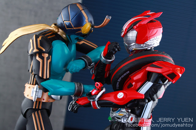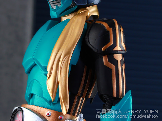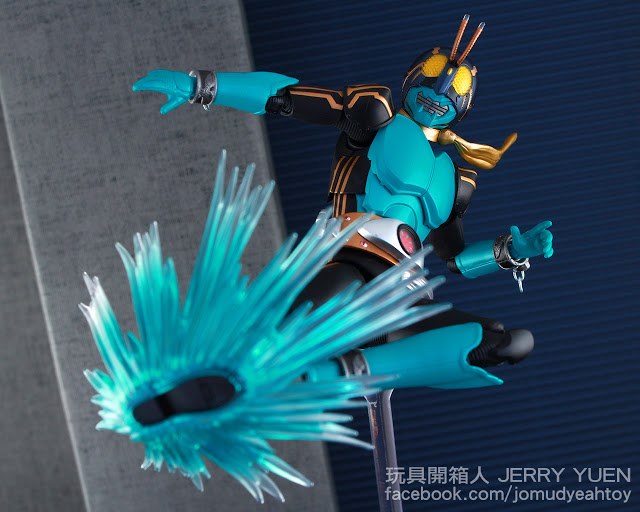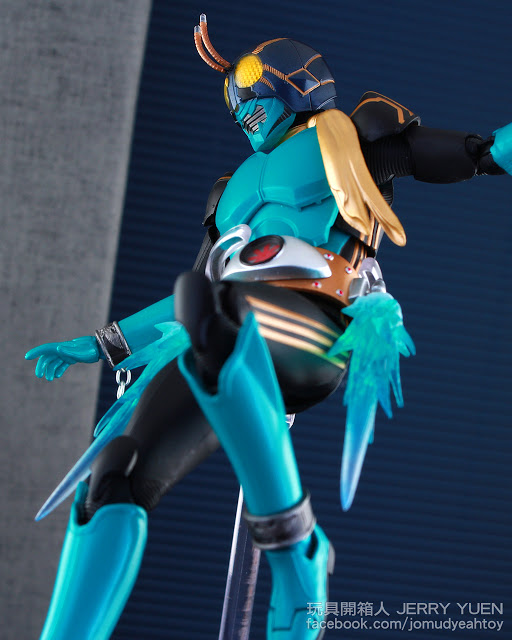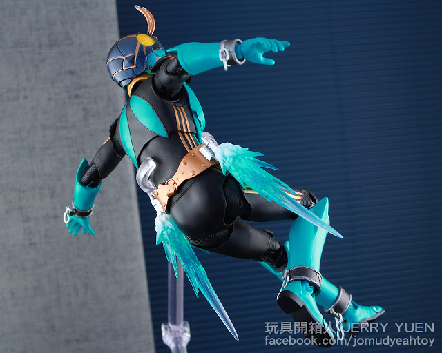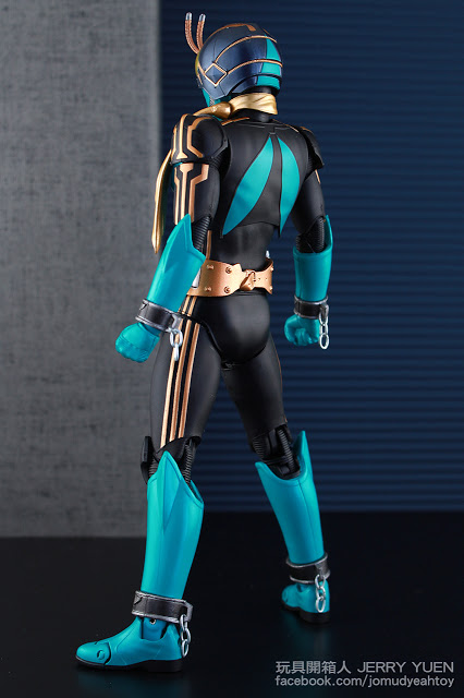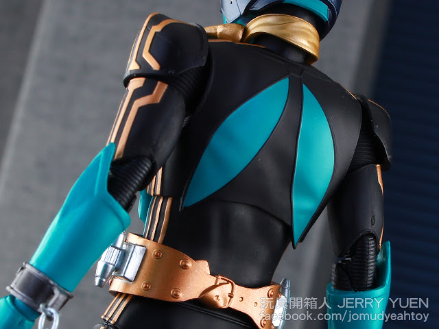 可動性方面非常討好,最驚喜的是腹甲能向上收納,給予更大空間活動。下盤用上拉出式關節(即將推出之 Ghost 系列都是用上這種關節),但筆者較喜歡 鎧武 及 Drive 系列之球型關節啊。另外腳裸貼地關節幅度較少,腳張得太開或會站得不穩定。