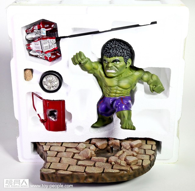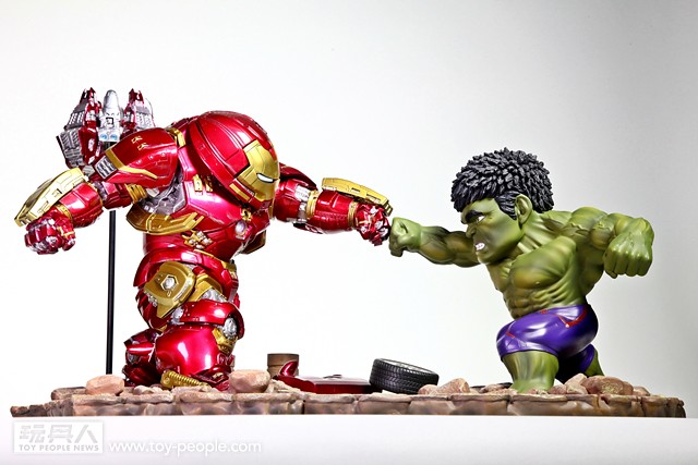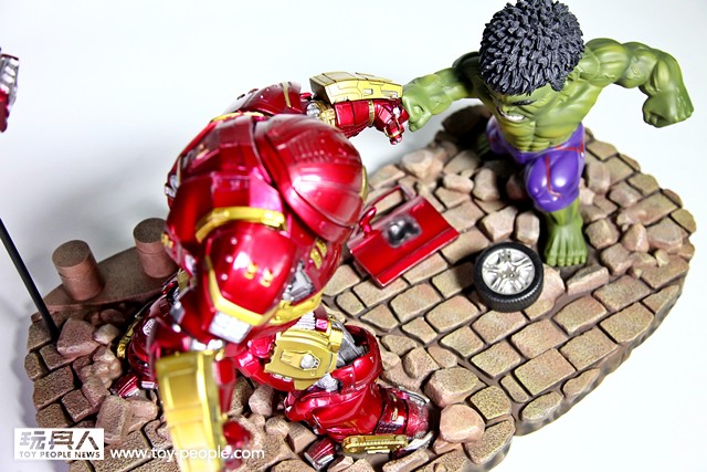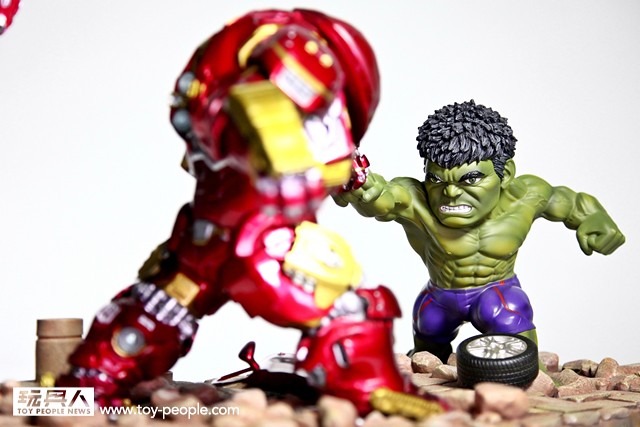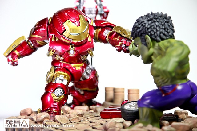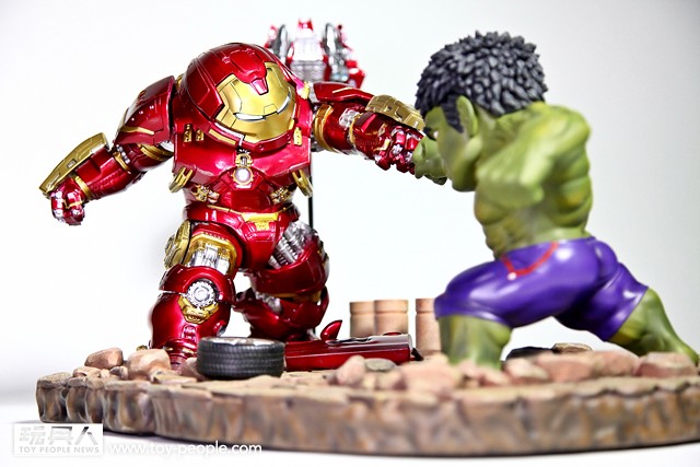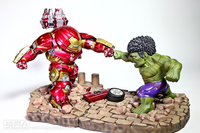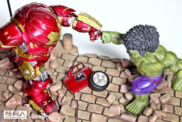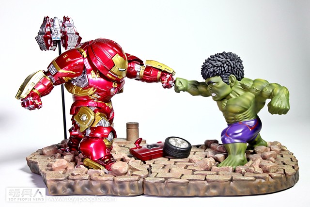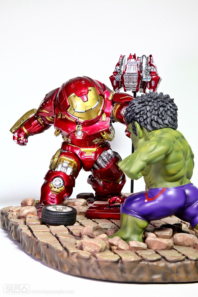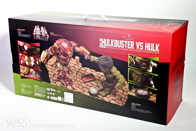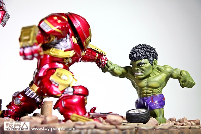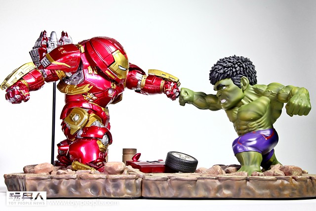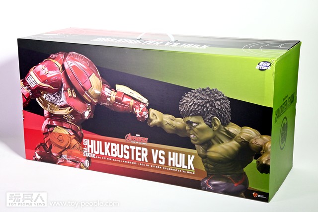 各位玩具人還記得臺灣本土知名玩具品牌野獸國(Beast Kingdom)之前在其Egg Attack 系列推出電影「復仇者聯盟2:奧創紀元」(Avengers: Age of Ultron)中「浩克破壞者」(Hulkbuster)與「浩克」(Hulk)對戰的場景雕像作品嗎?!這款超巨大的戰鬥場景雕像也悄悄地到貨囉!而玩具人編輯團隊有幸收到了這組「份量」十足的大型場景雕像作品,廢話不多說,馬上來為各位介紹這款經典的場景雕像作品。