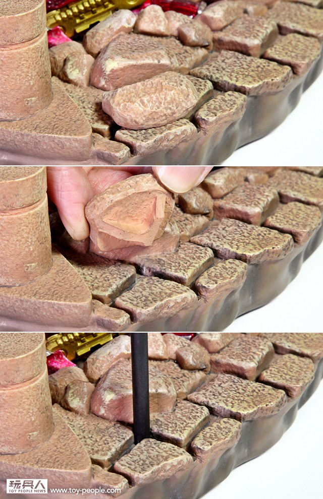 ▼ 在「浩克破壞者」的地台有一個非常貼心的設計,就是有附上一小塊的石頭零件,可以用來隱藏「薇若妮卡裝甲組件」支架的卡楯孔。各位玩具人可不要以為是地台壞掉了啊!誤~