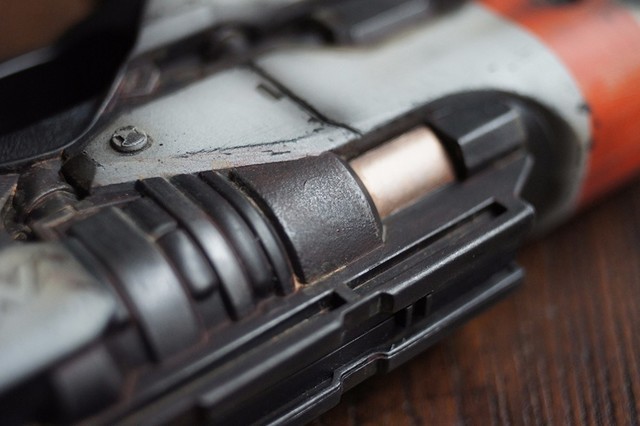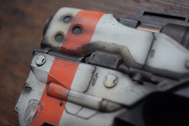 側邊3個孔洞用噴槍做出射擊過後的煙燻感..