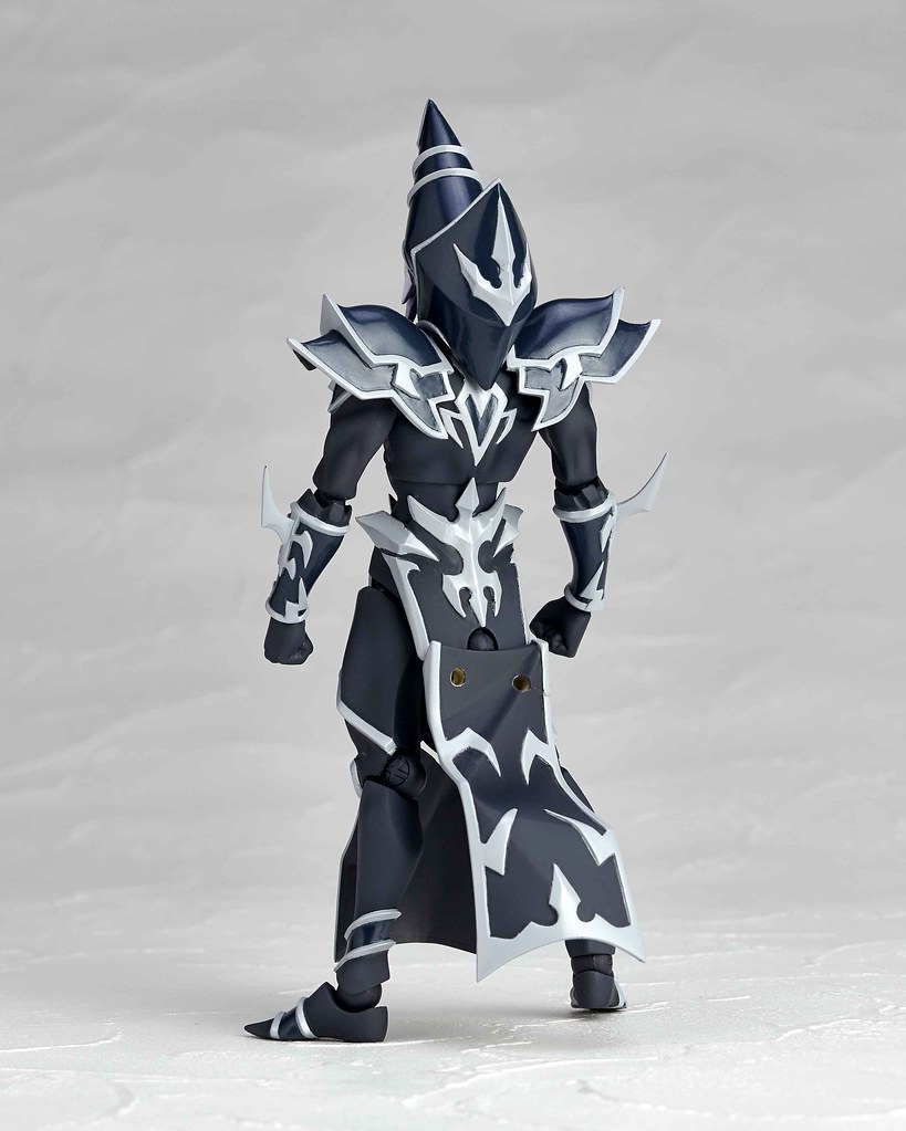 這次所發行的作品,是將這次劇場版作品新裝登場的「黑魔導」完全再現立體化,不論是特徵的帽子造型、全身遊走的線條使用珍珠白塗裝,將其魔幻造型的美感完全再現。全身超過20 個可動關節能夠藉其呈現出劇中多采多姿的模樣;除此之外,服裝特色的肩甲、服裝的衣擺也加入了可動關節,為其更加增添生動的流動感。