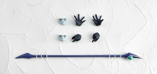 配件的部分將附屬了使用經典攻擊「黒・魔・導(ブラック・マジック)」的法杖、以及兩種不同變化的表情零件,也能藉由替換的手部零件,生動的擺設出戰鬥攻擊、待機狀態...等各式各樣姿勢,搭配上專屬支架,還能夠營造出宛如真實漂浮的效果。