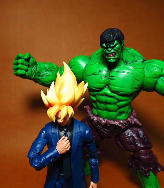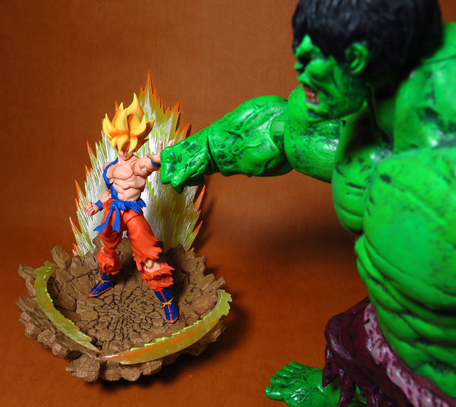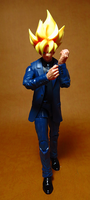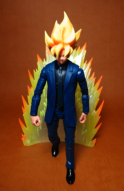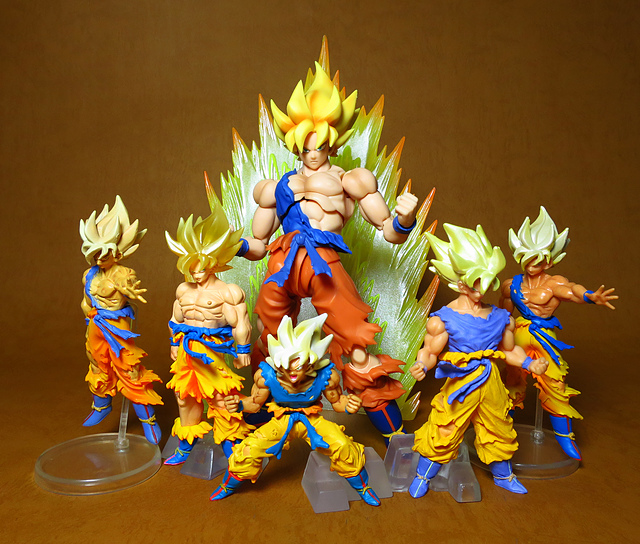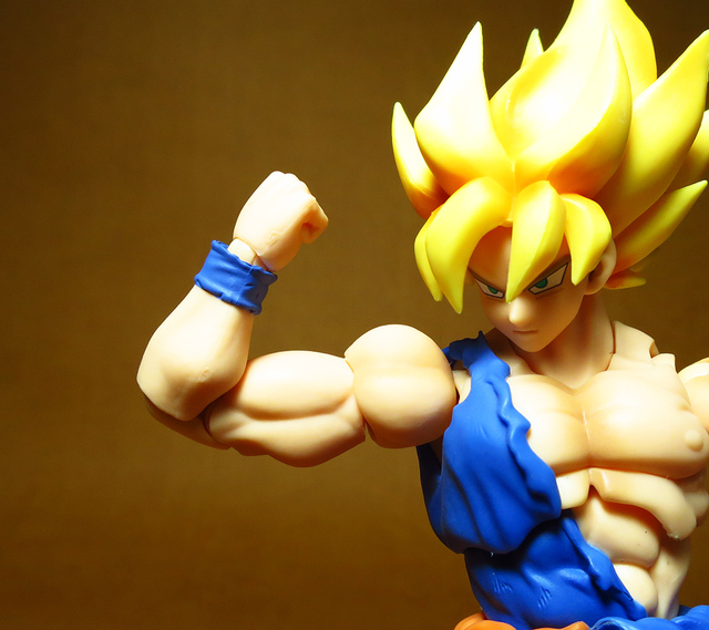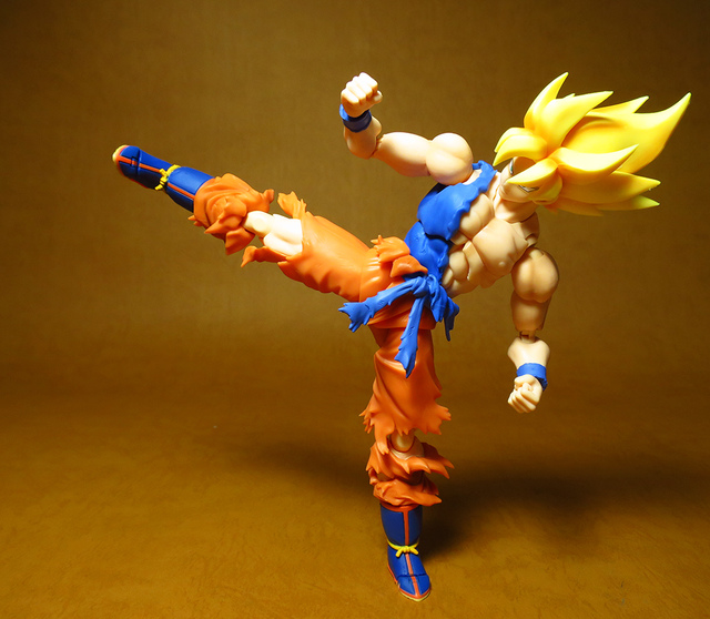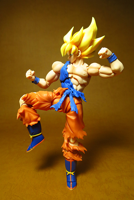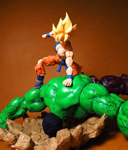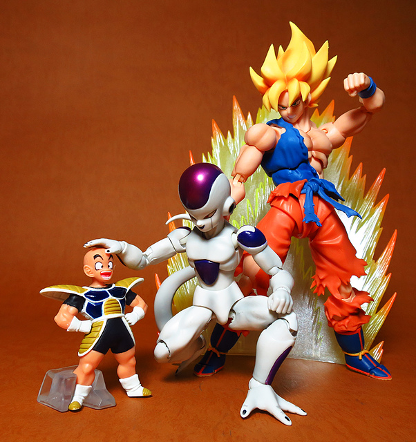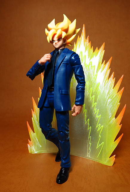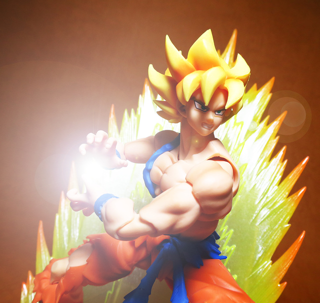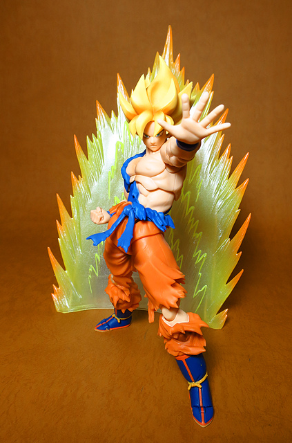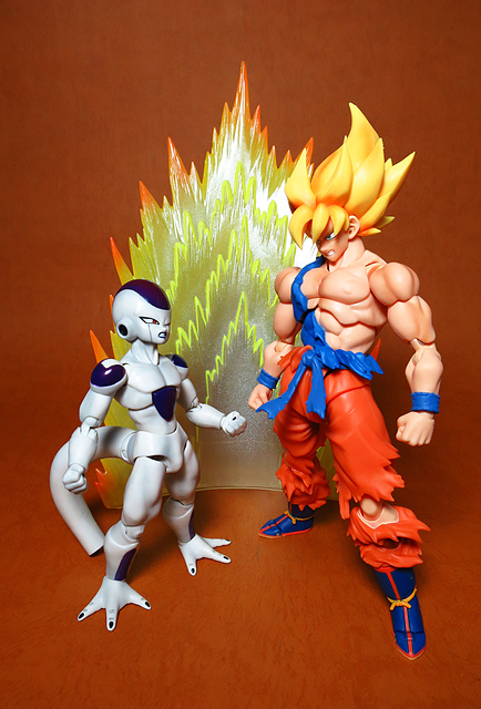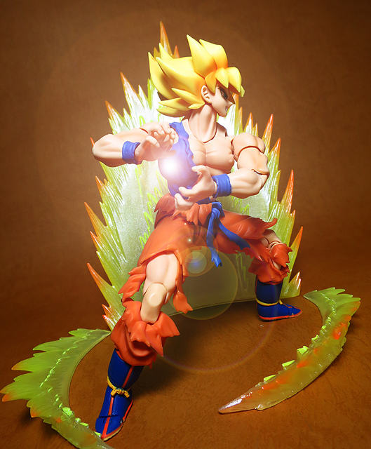 ↓在克林慘遭佛力扎爆體後,悟空的憤怒突破了身體的界限,變身成傳說中的超級賽亞人。順帶一提來個專業考究,其實悟空在這個當下藍色的內衣還沒破開,而是在歷經激鬥之後才又破掉一半成玩具這個樣貌