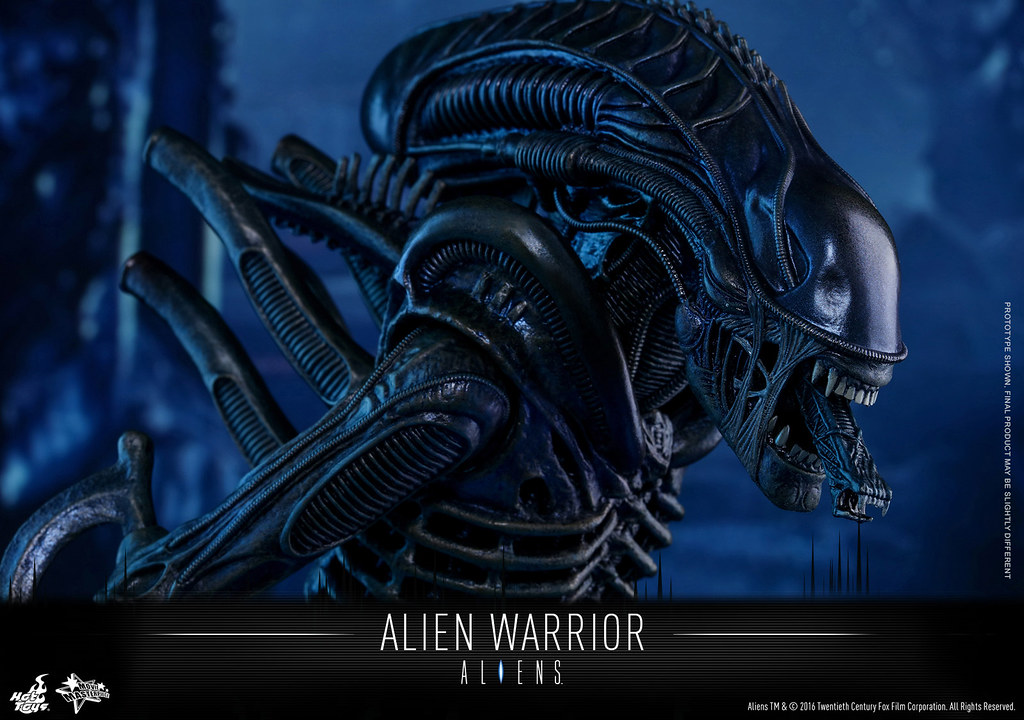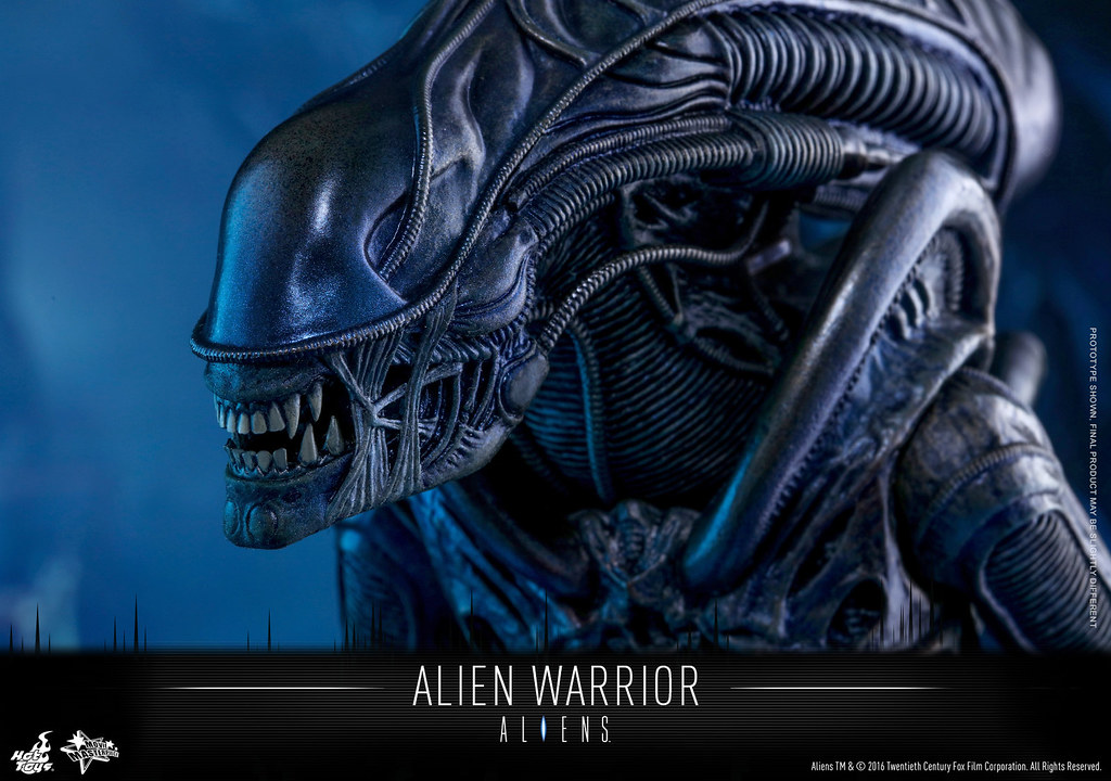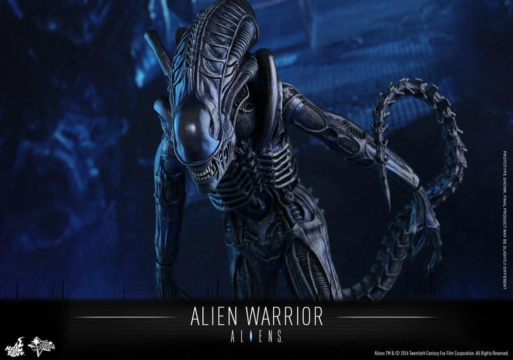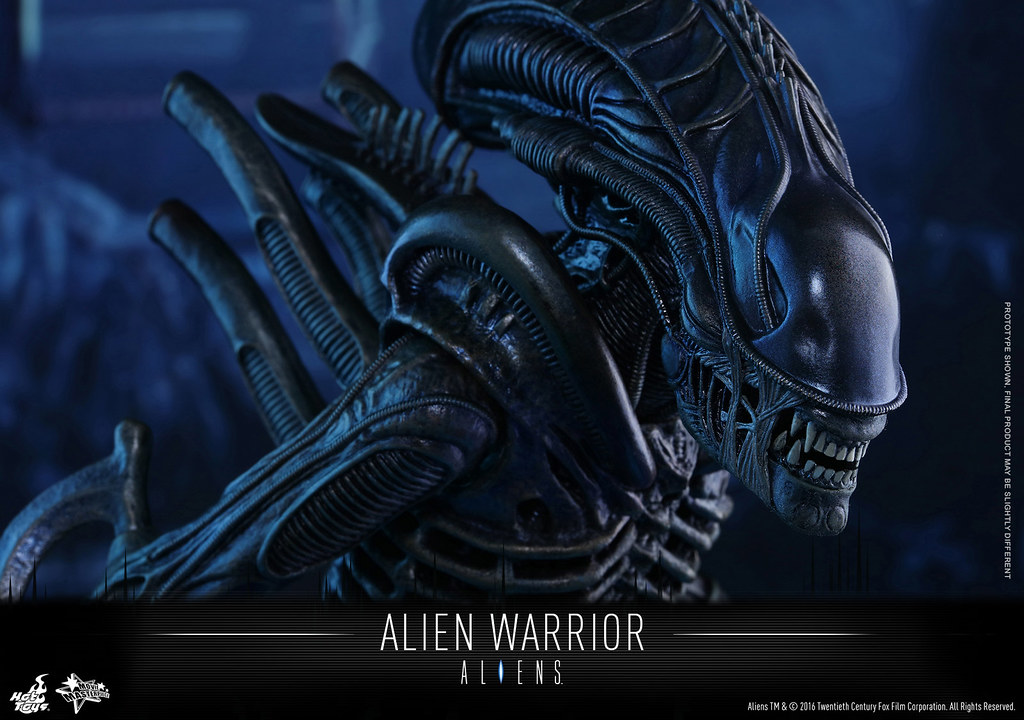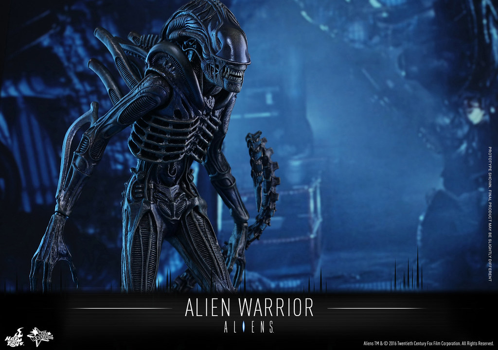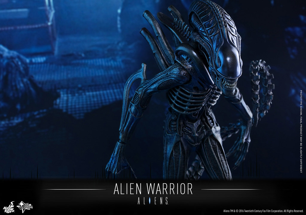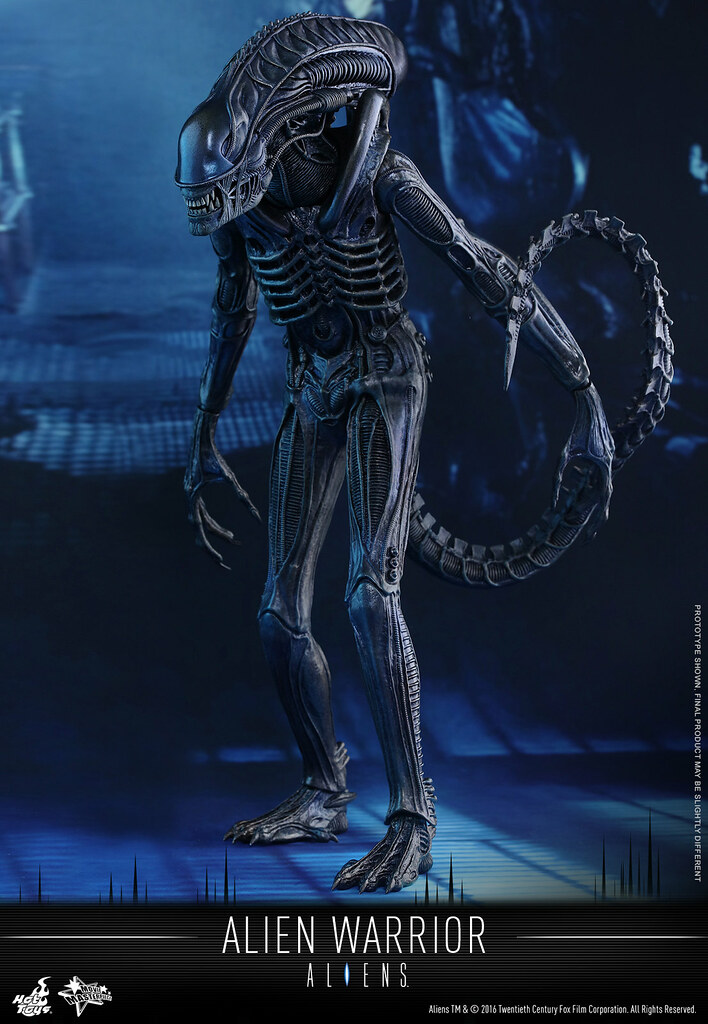 異形戰士最大的特色在於牠的頭骨形狀以及7-8 尺高的身高,而這次Hot Toys 針對其素體的設計也將身高拉至35 公分左右。異形戰士是「異形2」電影中直到最後一刻才決定正式造型,由於在拍攝的過程中發現原先普通的異形(Drones)頭部的設計會讓拍攝造成困難,所以才改變成現在的模樣,有興趣的玩具人不要錯過囉。