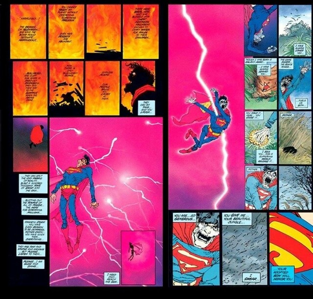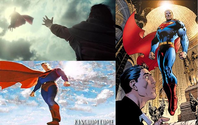 這部電影對於超人有很多的宗教比喻,不論是畫面、意境和言語形容都有,這些大多參考自宗教性質很重的故事Kingdom Come,而左圖是正史世界超人,發生在故事For Tomorrow,超人自己也來跟神父告解,但神父也把超人當作天神下凡的意境畫面。這部電影很多畫面也是參考漫畫、動畫所拍攝,因此大家可以去找找,如果要我一個一個寫出來,恐怕六篇文章都寫不完啊...。