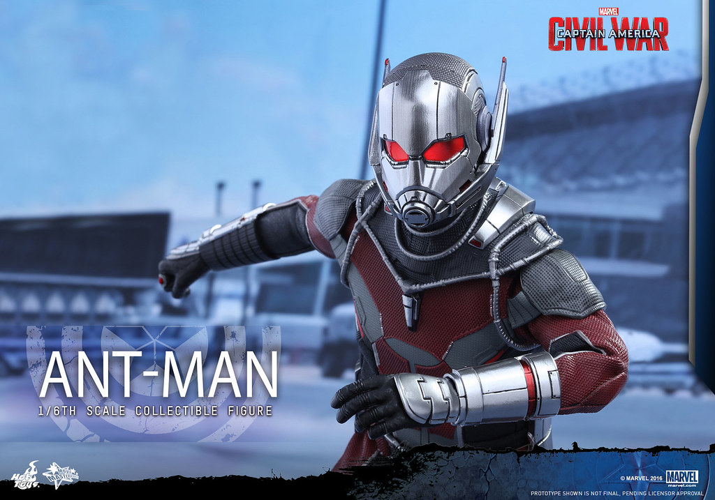 Hot Toys 公司繼推出了電影「美國隊長3:英雄內戰」(Captain America: Civil War)中的「美國隊長」、「酷寒戰士」巴奇.巴恩斯、「鷹眼」以及「獵鷹」的1/6 比例人偶作品之後,又將要再推出美國隊長陣營中的學歷最高的超級英雄:「蟻人」(Ant-Man)的1/6 比例人偶作品。
