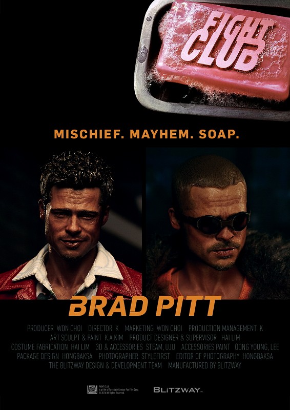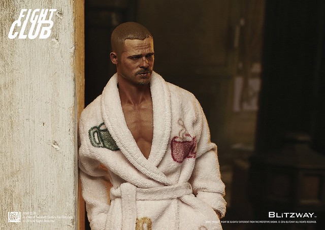 前Hot Toys 知名頭雕大師K.A. Kim 加盟之後,近年來陸續推出許多精彩傑作的韓國收藏級人偶品牌“BLITZWAY”,繼1/4 瑪麗蓮.夢露雕像、1/4 洛基雕像之後,再度推出令影迷驚喜的震撼傑作!許多1/6 人偶收藏家期待已久的作品《鬥陣俱樂部》1/6 比例泰勒‧德頓! 將推出兩種版本:紅色皮衣Ver. 與毛皮大衣Ver.。除此之外,另有同時收錄兩種版本並追加特殊配件的豪華特別組。