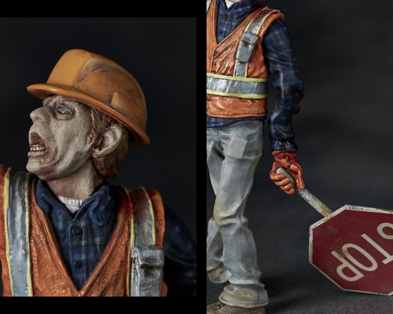 《地獄殭屍默示錄》系列第一波,將以故事展開的場景「上午11時50分 高速公路」作為展開,將場景中的角色製作為模型,並附有不同變化的配件,可以讓各位玩具人自行變化與塗裝。首波收錄的三位關鍵角色:她(女主角)、卡車司機與交通指揮員。編號No.03 的交通指揮員,在引導交通時,被背後的工程車輛敲擊而死亡。右腳粉碎性骨折,殭屍化之後本人依舊堅持使用單腳站立來繼續執行業務,產生了詭異恐怖的扭曲動作。配件附屬了「STOP」號誌牌、工程帽,並且可替換左腕來改變舉牌、放下的姿勢。
