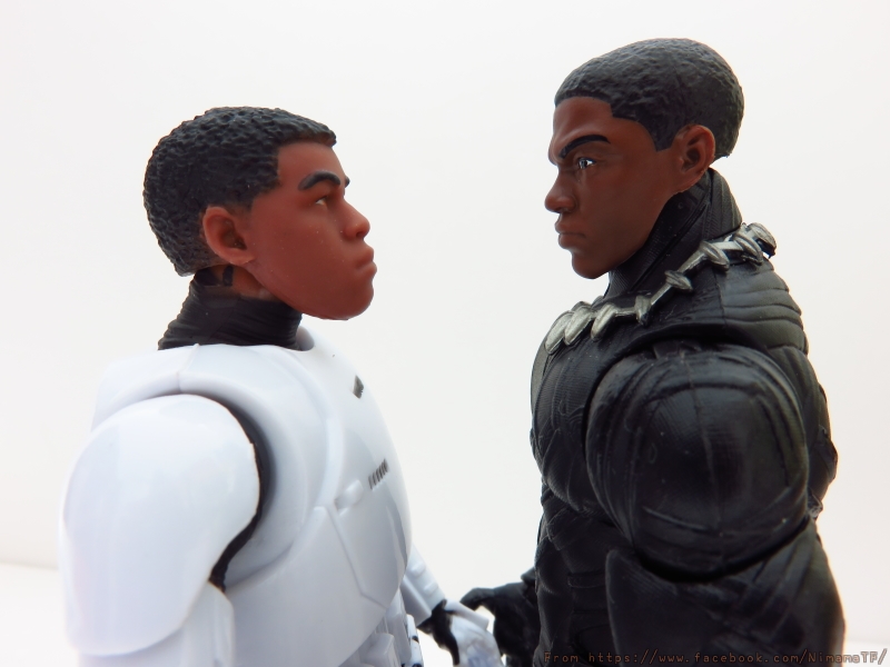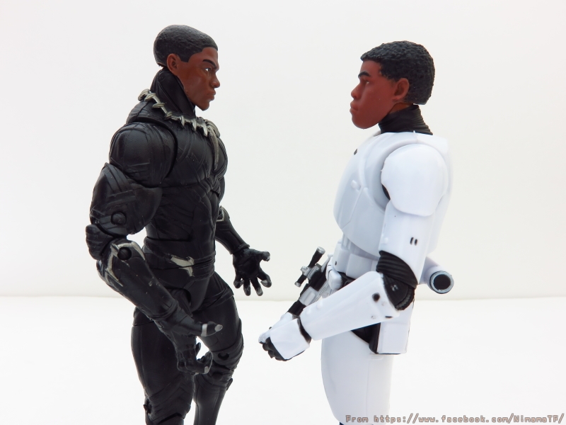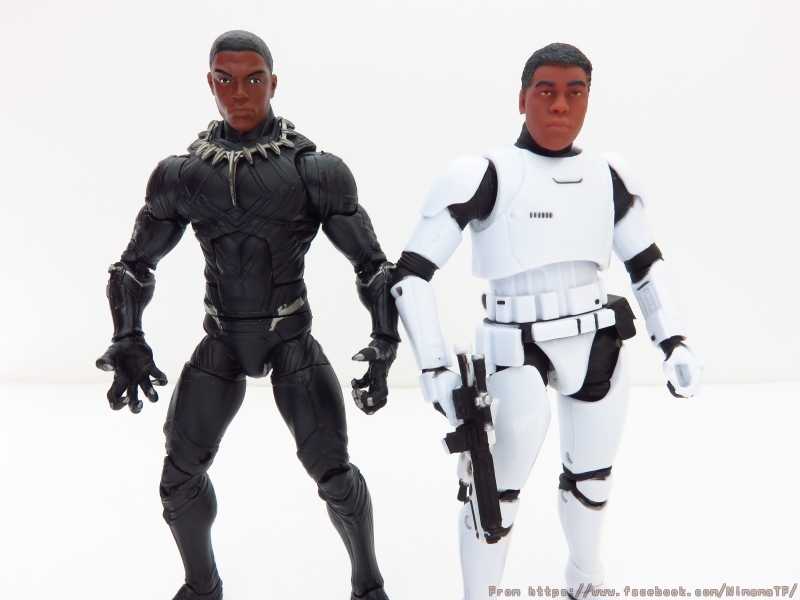再來我把FINN跟黑豹擺在一起看看,之所以會這樣是因為前陣子看到六吋黑豹到貨了,馬馬就戲稱黑豹是FINN跑去打工的角色,因為都是黑人演員擔綱演出,加上玩具的部分都有呈現出來,於是就決定這樣做了。