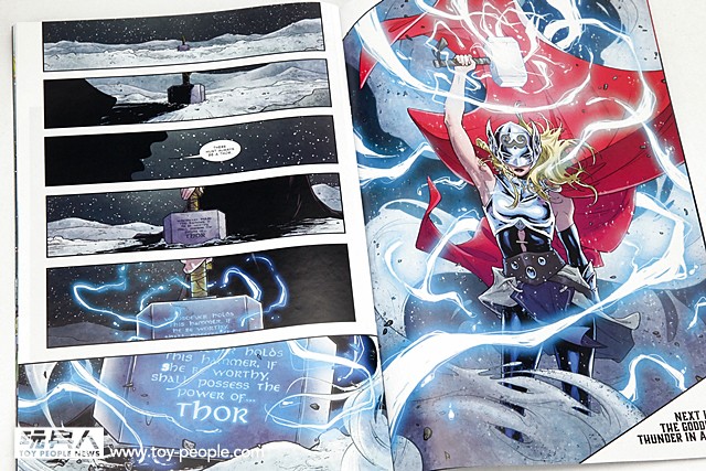 ▼ 收錄的漫畫是2014 年十月開始的《萬能的索爾》第一期。這一系列的新連載,最大的爆點在於雷神索爾由於再也無法拿起雷神之鎚,而誕生了一位神秘的新雷神,而且還是女性!