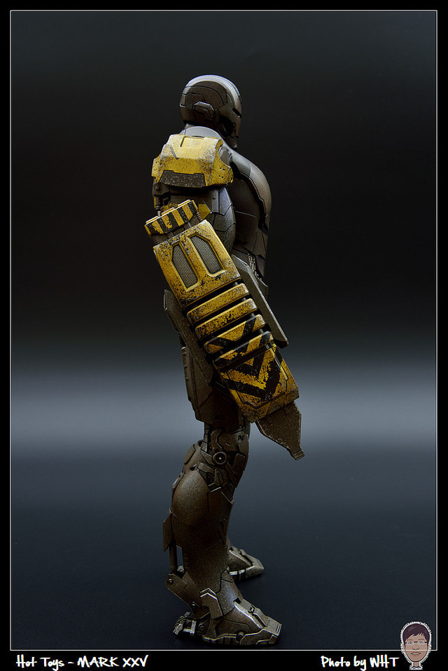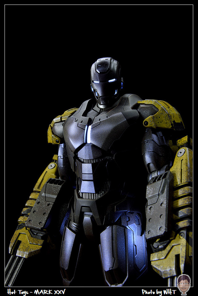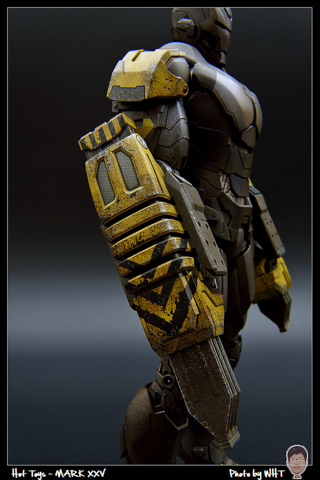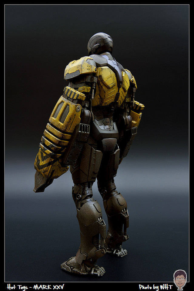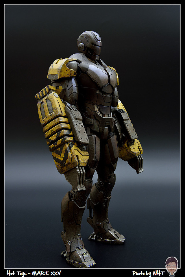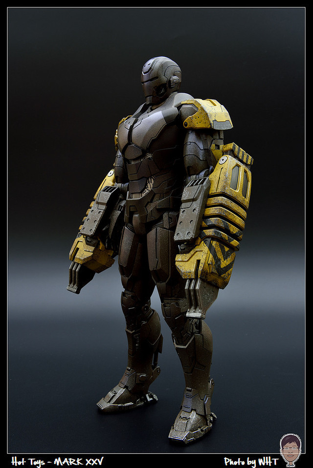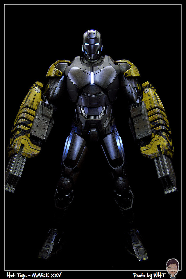 查了一下網路資料,這隻MK25 主要用途在於支援工程相關活動,戰鬥並非主要的設計目的,而且在外型上也與一般鋼鐵人有一些不同,例如反應爐呈長條、雙手裝備了鑽鎚。一般紅金配色且充滿流線感的鋼鐵人看久了,突然出現這種造型較為特殊的型號時,都覺得特別帥~XD