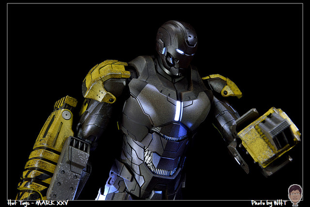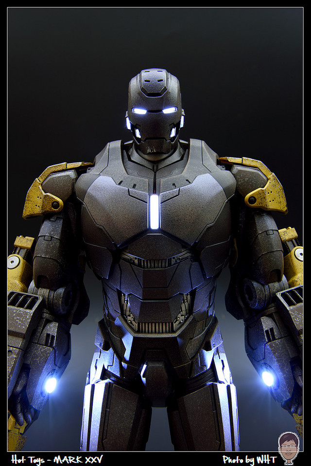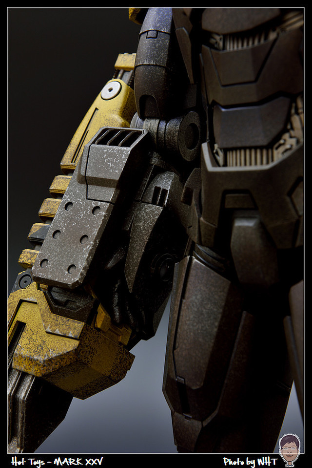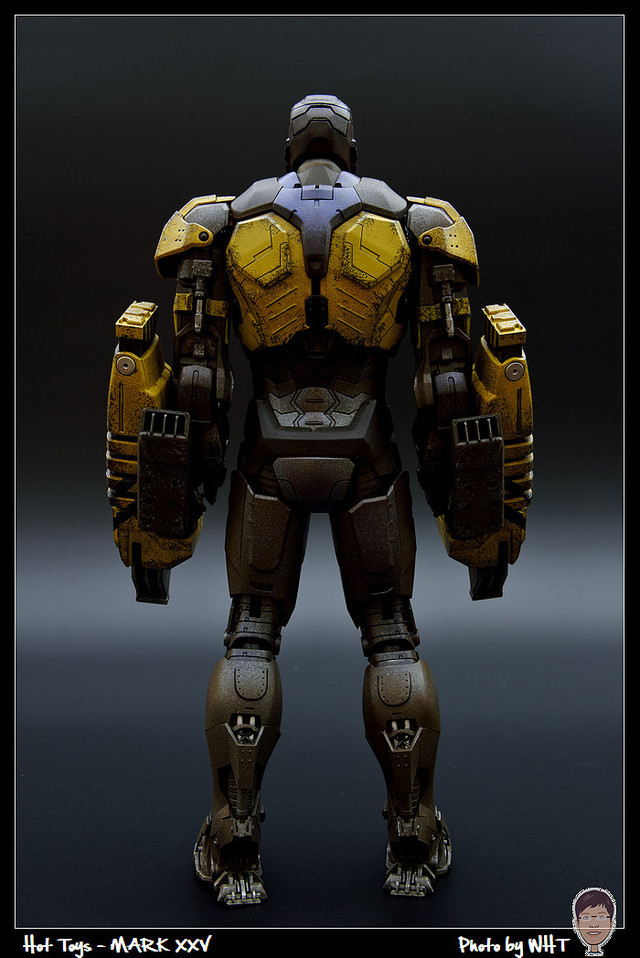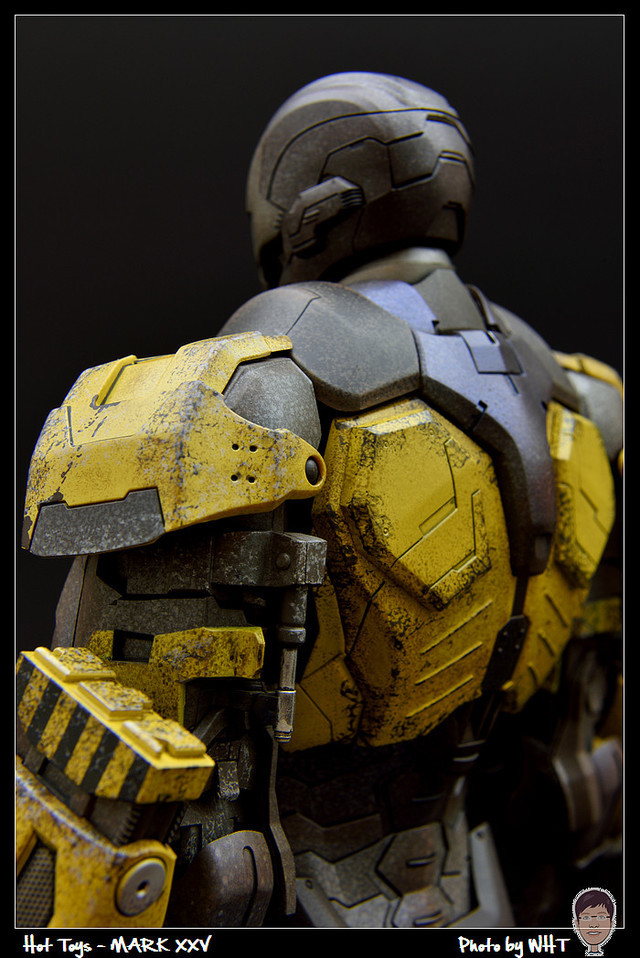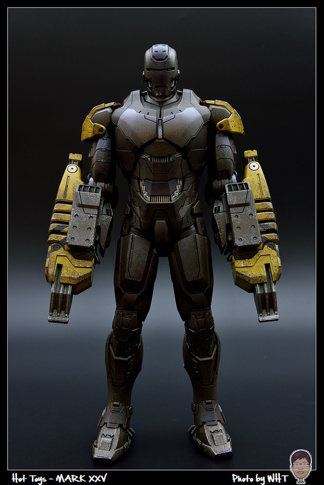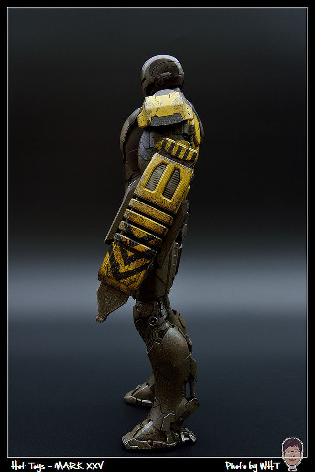 查了一下網路資料,這隻MK25 主要用途在於支援工程相關活動,戰鬥並非主要的設計目的,而且在外型上也與一般鋼鐵人有一些不同,例如反應爐呈長條、雙手裝備了鑽鎚。一般紅金配色且充滿流線感的鋼鐵人看久了,突然出現這種造型較為特殊的型號時,都覺得特別帥~XD