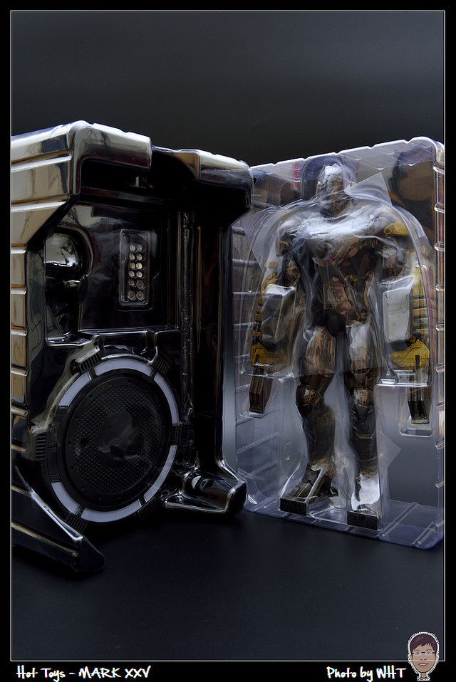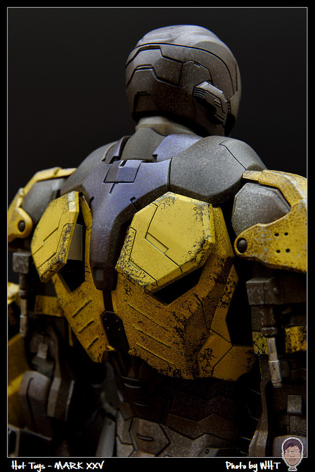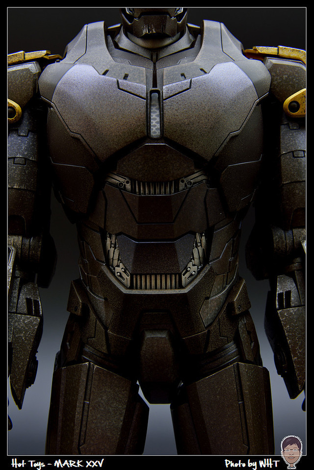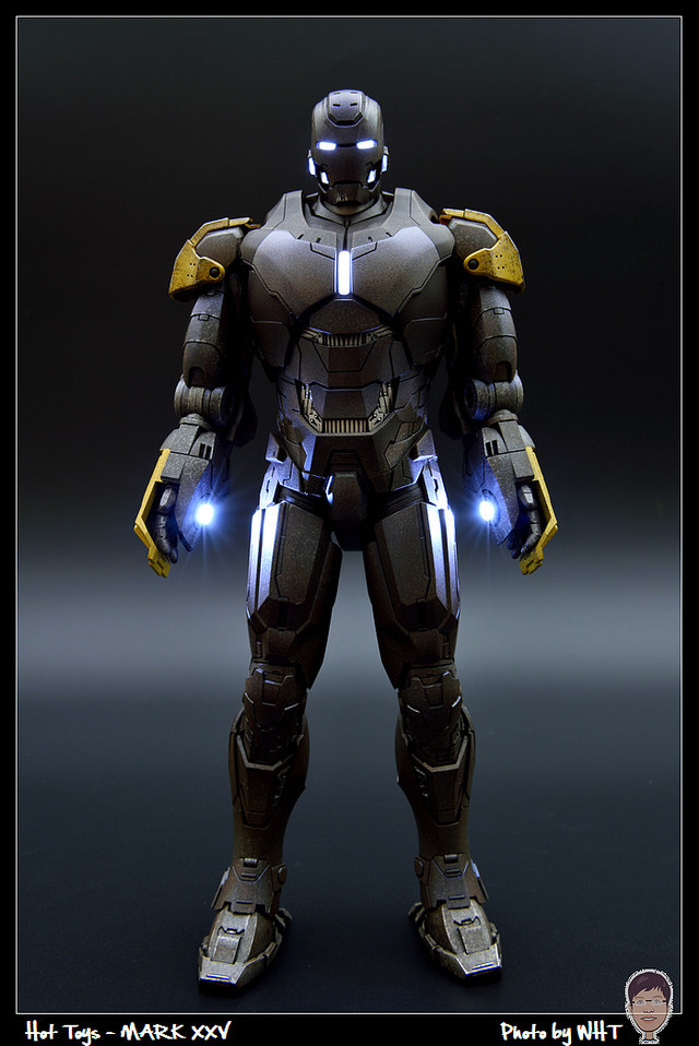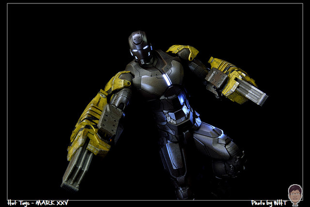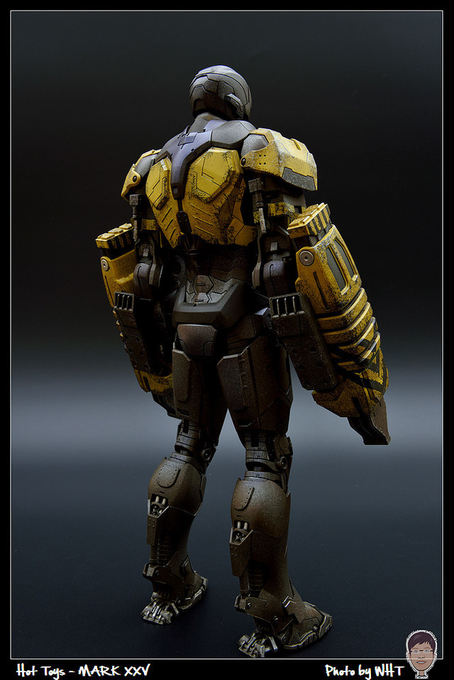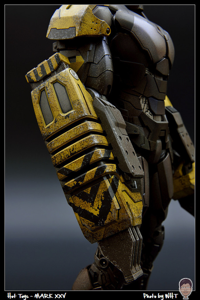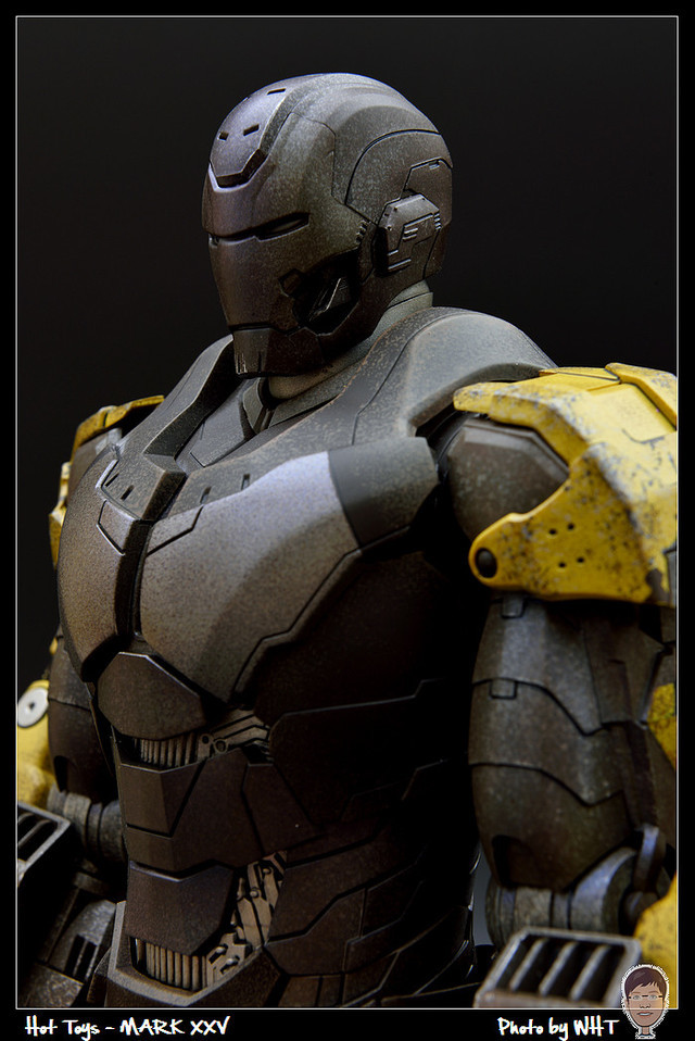 查了一下網路資料,這隻MK25 主要用途在於支援工程相關活動,戰鬥並非主要的設計目的,而且在外型上也與一般鋼鐵人有一些不同,例如反應爐呈長條、雙手裝備了鑽鎚。一般紅金配色且充滿流線感的鋼鐵人看久了,突然出現這種造型較為特殊的型號時,都覺得特別帥~XD