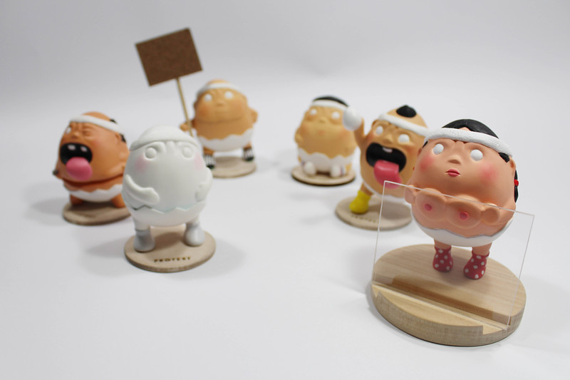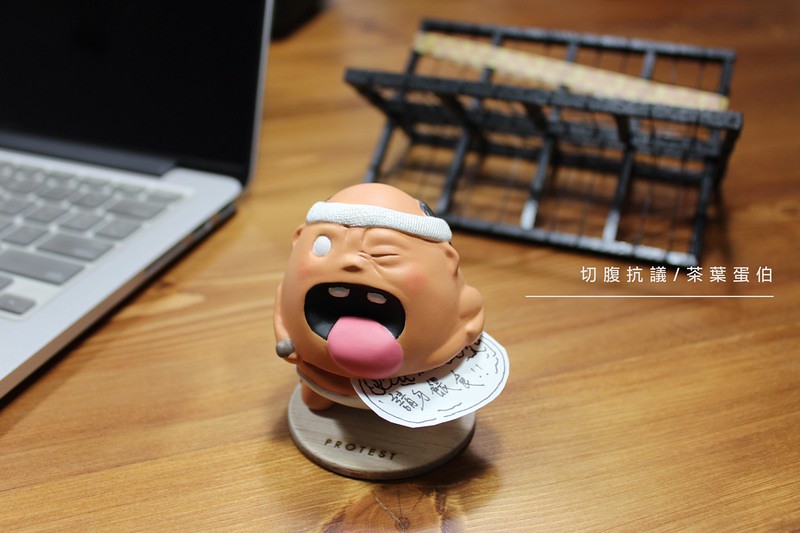 這系列「抗議公仔」主要是以雞蛋的造型作為發想,隱含著以卵擊石的含意。而除了第一款的上空解放抗議「荷包蛋扭」角色之外,還有其他不同的角色,包括了:標語牌抗議「炒蛋叔」、丟雞蛋抗議「滷蛋弟」、靜坐抗議「水煮蛋小弟」、切腹抗議「茶葉蛋伯」。各位玩具人快來一同讓這個集資活動成功吧!!