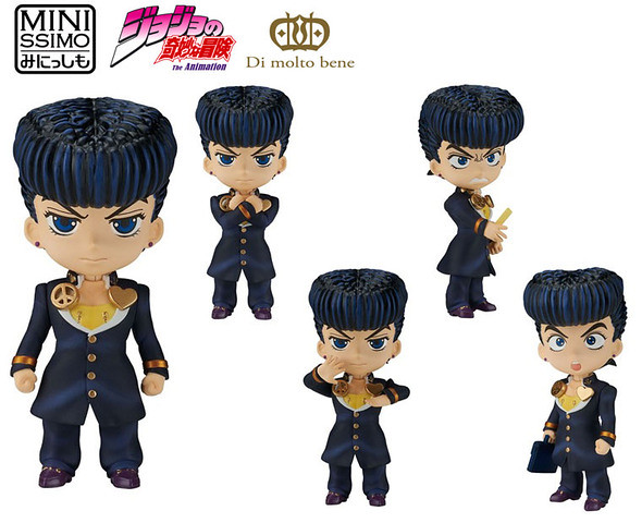 這個新Minissimo系列將角色都縮小成為像是「黏土人」Q版比例,作品附有約三種不同表情配件「通常顔」、「怒り顔」和「驚き顔」可以替換,和多款不同的手勢配件還有拿著梳子和學生書包的手首配件,讓玩家們可以依照劇中故事發展來替換這些有趣的配件,尤其是當有人批評仗助的髮型時候,他立刻就會暴怒還拿著梳子的模樣,在最近的宮沢模型展示會也曝光其系列將會繼續推出“瘋狂鑽石”、“伊奇”等等素色樣品,喜愛《JoJo的奇妙冒險》的玩具人可以參考一下歐。