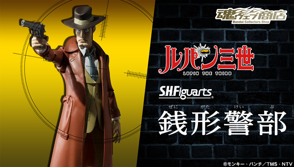 時常穿著風衣追著犯案線索的錢形警部,總是牙癢癢的希望將魯邦來逮捕歸案的模樣,此次也以兩款不同表情配件來呈現,並附有多款交換用右手首4種、交換用左手首2種、手銬和配槍等等配件,預計於魂web線商商店於2016年4月22日開始接受訂購,對《魯邦三世》系列動畫有興趣的玩具人可以參考一下歐!