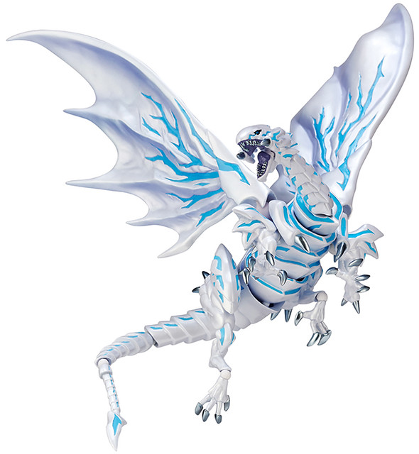 這次新登場的「青眼亞白龍」是升級後的「青眼白龍」,此卡不能使用普通召喚,必須將手牌的「青眼白龍」出示給對手觀看之後,藉由特殊召喚讓青眼的亞白龍上場。其中,最強大的能力在於,能夠代替攻擊力,發動能力直接破壞對手場上的一隻怪獸。 這次所發行的作品,將藉由22公分超巨大的尺寸來呈現其姿態,並以珍珠白塗裝來呈現其「亞白龍」名稱由來的白色模樣。除此之外,還將使用了超過21的可動關節,使其能夠呈現生動靈活的姿態,不論是振翅飛翔或咆哮的姿勢,都能夠完全再現。
