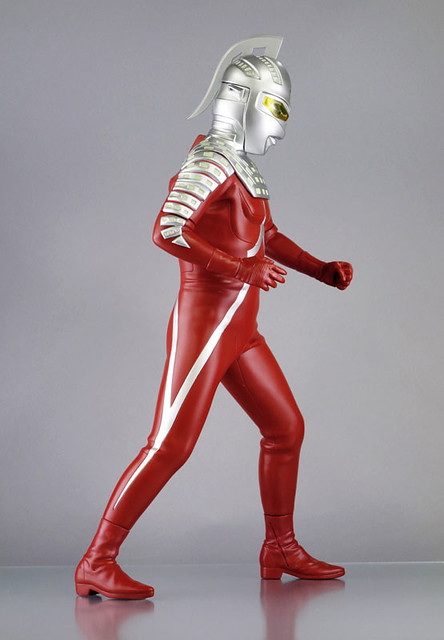 日海洋堂玩具公司的「巨大軟膠系列」MEGA SOFUBI ADVANCE這次將推出《超人七號》ウルトラセブン,這次由海洋堂所屬的原型家木下隆志老師來執行Seven的造型,將在特攝劇中身穿著道具服模樣仔細再現,所以可以發現背部有隱藏拉鍊的隆起部份,其他關節部分也有寫實布料皺褶的質感表現等等。