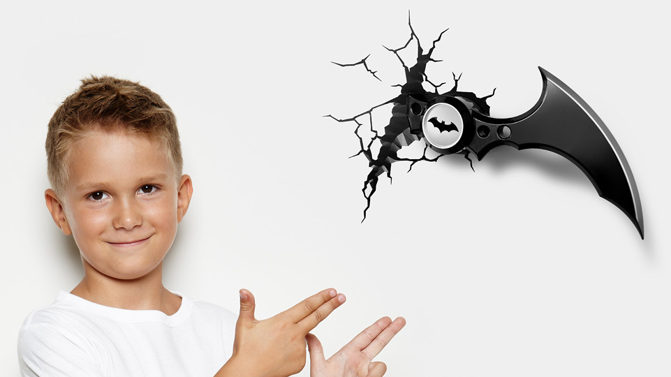 這次3D LIGHT FX 公司將要推出四款「DC Comics」系列的造型壁燈,包括了:經典黑黃色的蝙蝠俠LOGO、超人LOGO、蝙蝠俠的頭部造型以及蝙蝠俠的蝙蝠飛鏢武器等四款作品。每款作品都是使用三顆3 號(AA)的電池,並搭配一張爆裂紋來呈現充滿魄力的模樣。有興趣的玩具人不要錯過了。