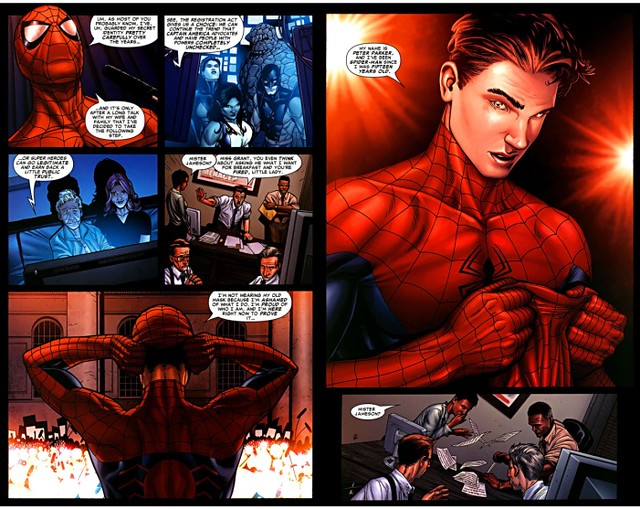 Superhuman Registration Act(超人類註冊法案)-隨著House of M和延續討論的Decimation M這兩個大事件,美國政府又再度討論起有關超人類的註冊法案,而東尼和以隨身記者身份的彼得也趕去白宮參予相關討論。