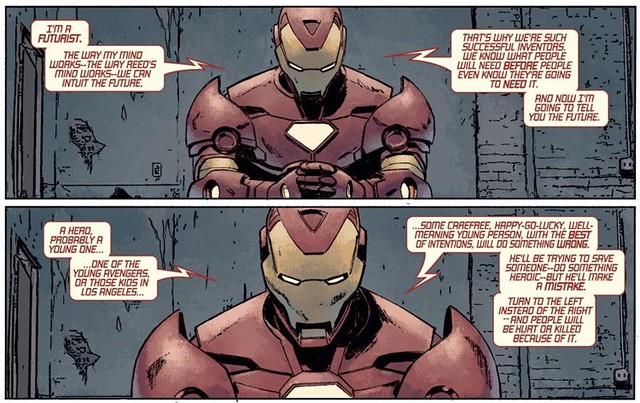 鋼鐵人預測,像是年輕復仇者這類太過年輕的超級英雄團體,總有一天會因為衝動讓其強大的超能力濫用,使得數百條生命的喪生。導致政府就會以此為例子當理由,可能就此提出比超人類註冊法案更加嚴厲的新法案,甚至還可能用武力來強迫註冊。所以要是真發生,請大家做好心理準備,不要用暴力,以免政府為此無限上綱,擴充更多的權力。