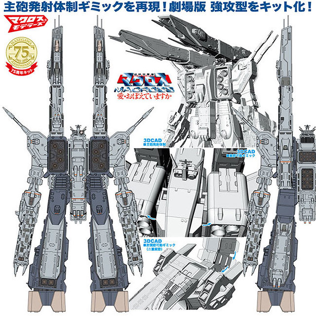 這次由長谷川模型公司將推出《超時空要塞:愛‧還記得嗎》超時空要塞マクロス 愛・おぼえていますか 劇場版當中所登場的「馬克羅斯號」,之前已經推出過「戰艦型態」的馬克羅斯號,這次以“強攻型態”來呈現其肩上的主砲裝置可以向前移動,身上的艦艇獨特的細節也精彩表現出來,並且在多處部位都有可動關節的配置像是肩部和上臂、肘部(雙聯)、胸部、髖、踝等等多處。