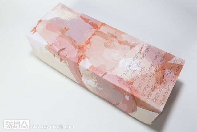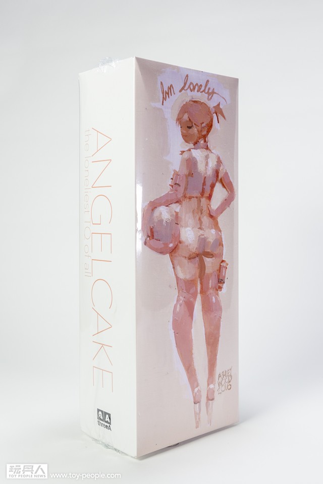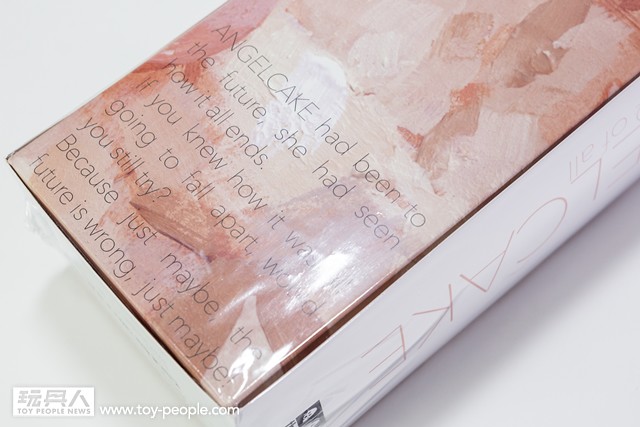 ▼ 打開運輸箱之後,映入眼簾的就是這個由設計師Ashley Wood 所繪製的「Angel Cake Lonely TQ」油畫圖,整體的顏色搭配都是以粉紅色系來繪製,其他部分搭配著白色以及粉紅色的字樣來凸顯這次的作品。