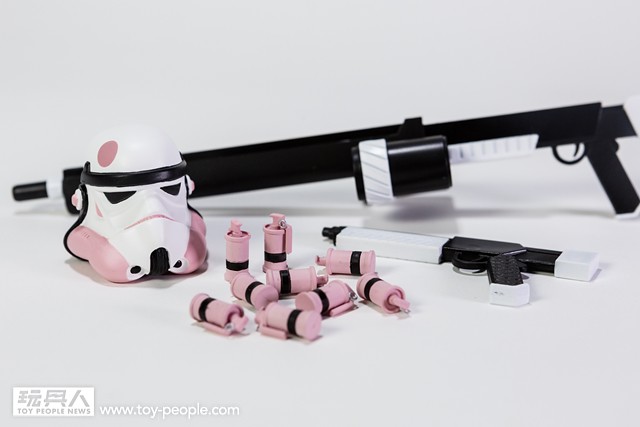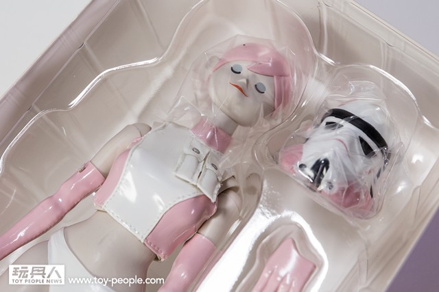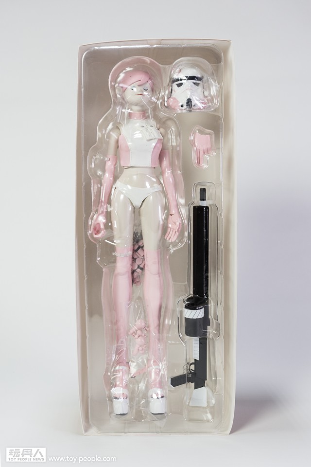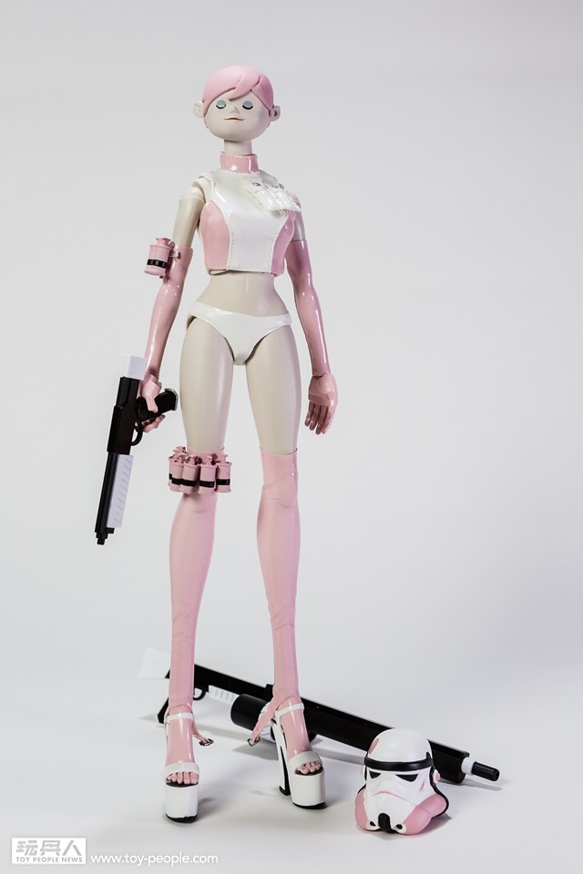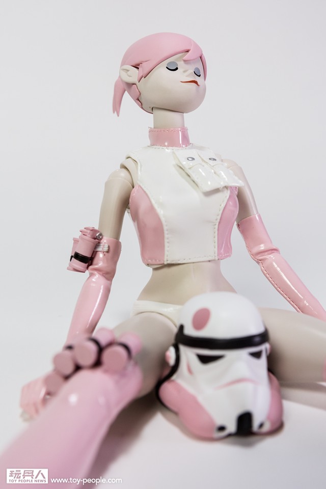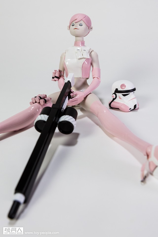 首先,「玩具人」編輯部要為各位玩具人介紹的就是「粉紅星戰TQ」(Angel Cake Lonely TQ)1/6 比例女偶作品;這款作品是由threeA 公司當家招牌設計師Ashley Wood 攜手美女設計師Siu Yin 一同創作完成的作品,其中融入令人神魂顛倒的星際大戰元素,以白色、粉紅色為主視覺的搭配可說是相當漂亮啊!