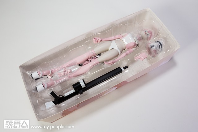 ▼ 這次所要推出「Angel Cake」的配件可說是相當的豐富啊!在武器配件的部分,除了有一把長槍一把短槍之外,還附上九顆的粉紅色、黑色相間的手榴彈,這個配色也是從未出現過的配色喔!相當值得收藏呢。此外,這次除了閉眼造型的頭雕之外,還另外附上了一個以白色為底色搭配黑色線條與粉紅區塊所打造而成的頭盔,可說是相當讚呢。br/>