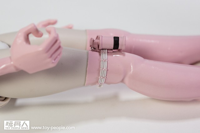 ▼ 這次在腿部長襪的材質是採用新式合成皮的材質,很服貼的包覆著「Angel Cake」的小腿;值得一提的是,在她右腿長襪的部分是有縫上一個鬆緊帶,方便各位玩具人來裝載手榴彈。
