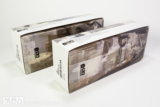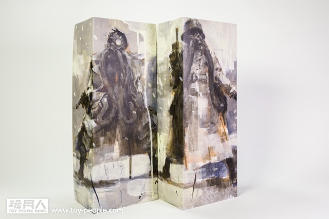 ▼ 獨立包裝盒的外盒的油畫圖案分別代表著兩個不同的角色,而這次Ashley Wood 在繪製兩個不同的角色的畫作時似乎有特別設計一番;因此,當兩個包裝外盒擺放在一起時,不管哪個在左或是在右都將呈現出截然不同的兩幅畫作,所以包裝外盒也可說是一個擺放裝飾的藝術品啊!