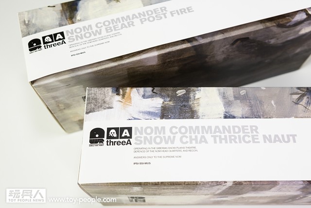 ▼ 而在側邊亦有印上兩個不同角色的名字,分別為:N.O.M. COMMANDER SNOW BEAR POST FIRE 與N.O.M. COMMANDER SNOW CHA THRICE NAUT。而在Ash 的BEAR 字樣部分是代表著之前在日本展所發售的限定品Kunstler Bear,但其背後所代表的意涵就不得而知了。而在CHA 字樣的部分,小編推測可能與Kim 的名字或是稱呼有些相關。值得一提的是,這次threeA 在設計包裝盒底部是將包裝盒正面的圖案放大後呈現。