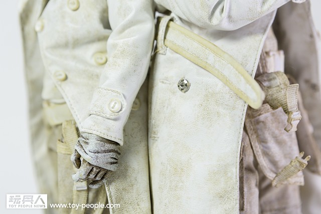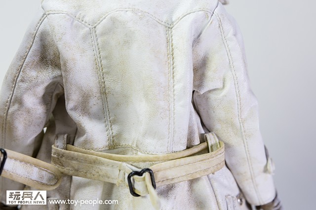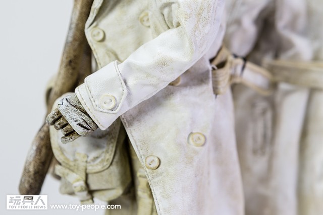 ▼ 而這次作品的另一特點就是在風衣外套的部分,質感可說是相當好啊,搭配著threeA 招牌的舊化效果,更將風衣的質感呈現出來;而在風衣的穿法是採用扣子搭配腰封的方式來穿搭,各位玩具人可以選擇自己覺得比較帥氣的穿搭方式。